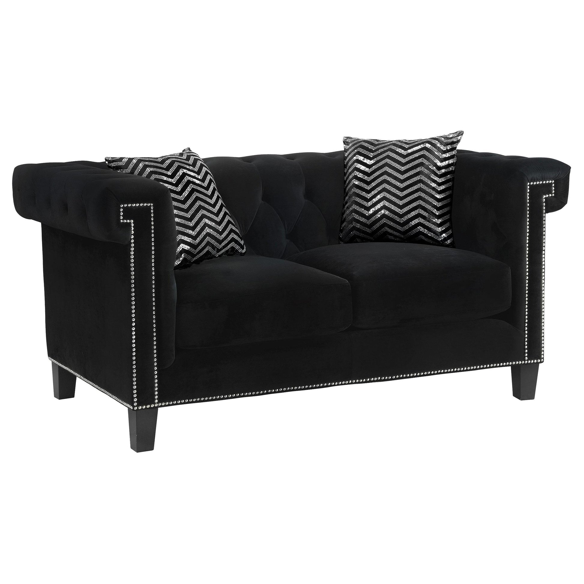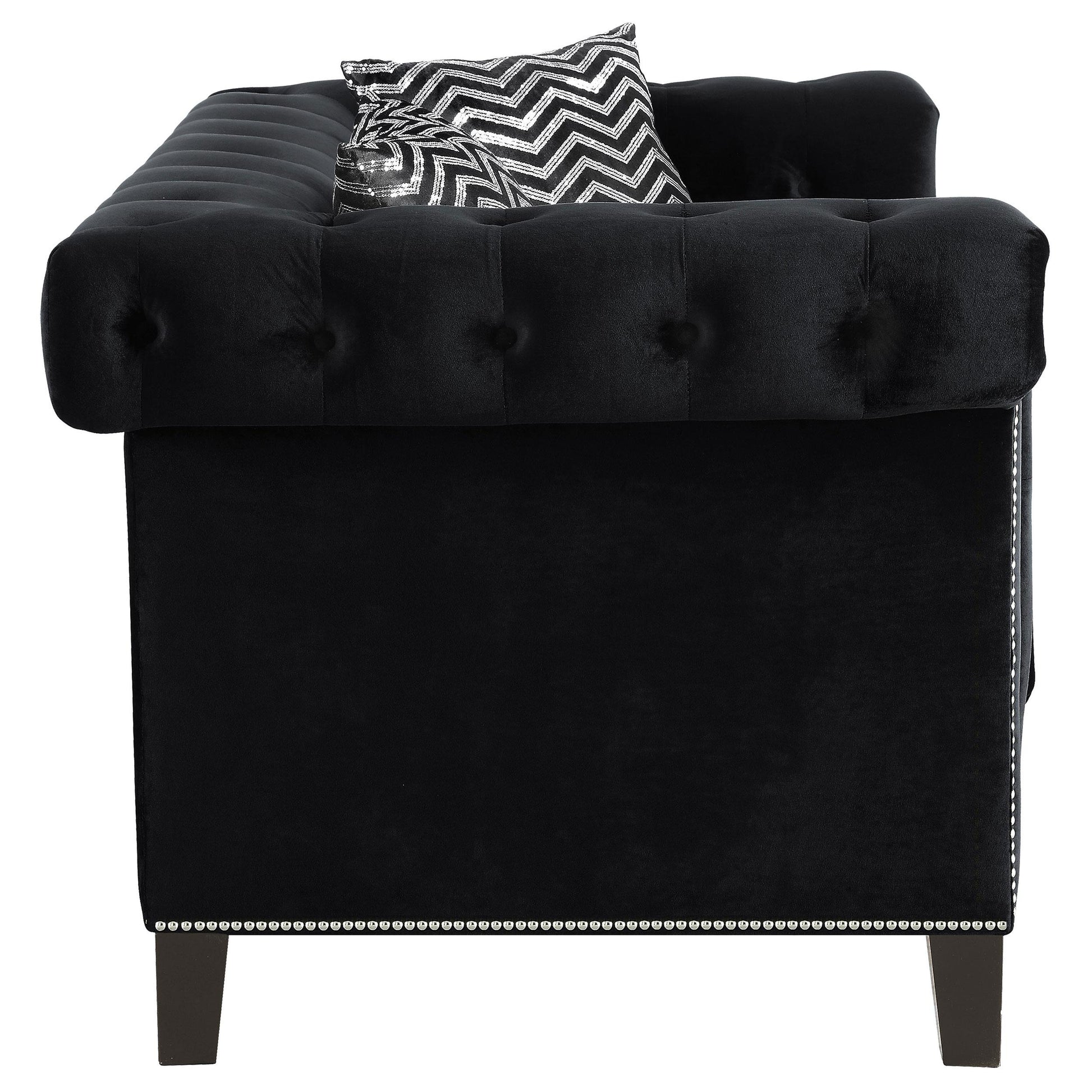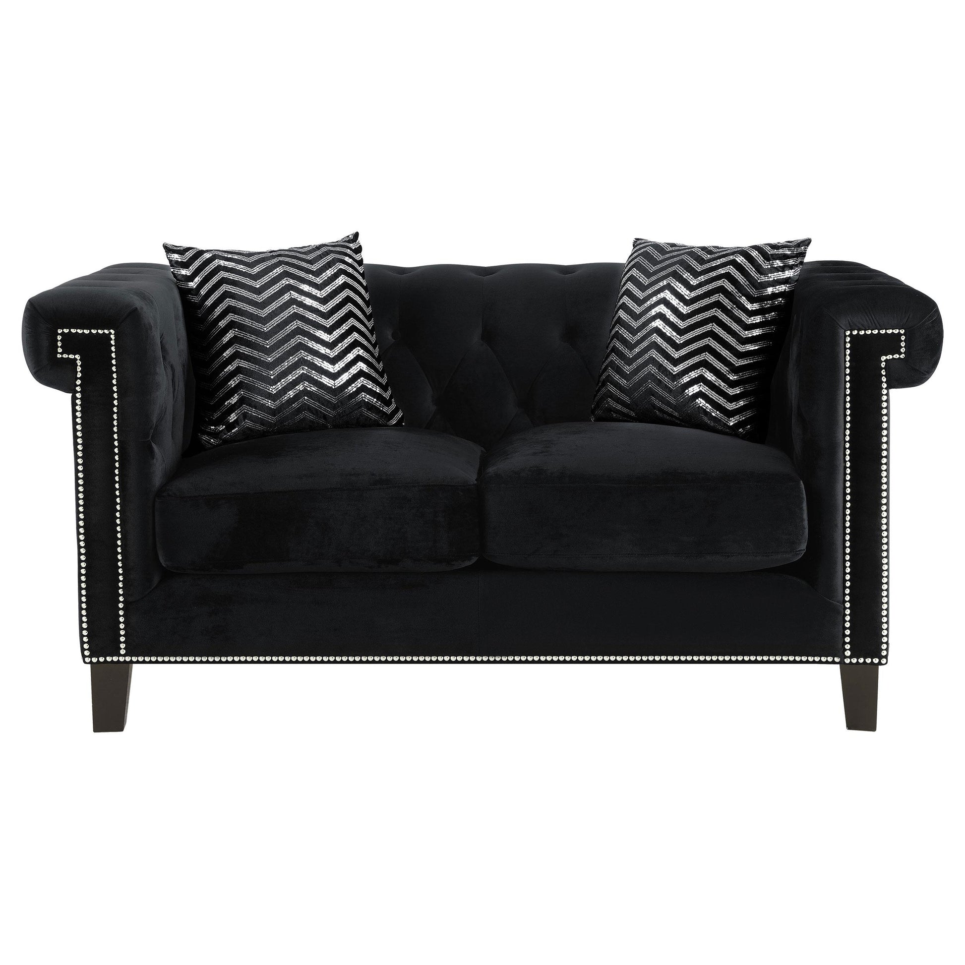 Introducing the Reventlow Upholstered Tufted Living Room Set in Black—an elegant, comfortable ensemble designed to elevate your living space. This set is ideal for homes that value a timeless look with everyday practicality, offering plush seating and refined tufted detailing that suits both formal and casual rooms.