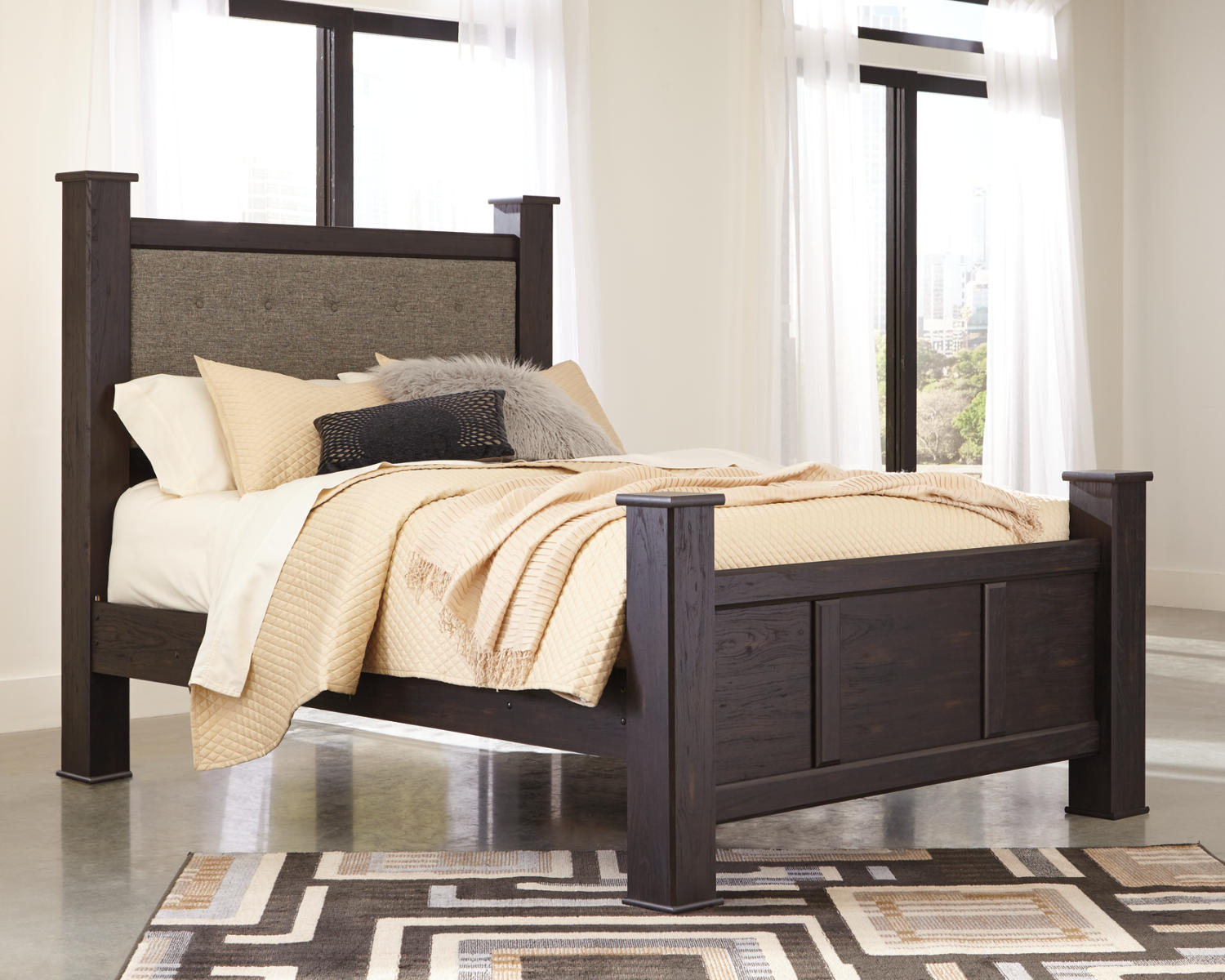 - Design: Poster bed silhouette with sturdy posts