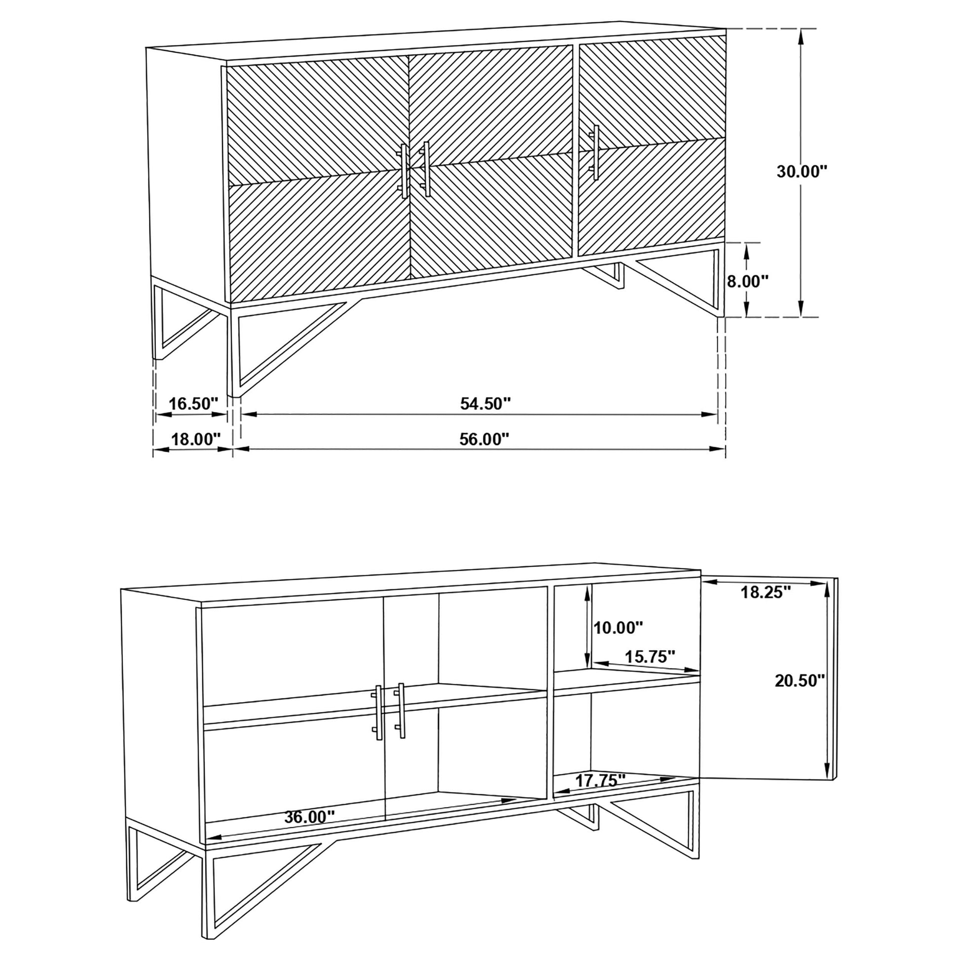 Riddell 3-door Wood Reeding Accent Cabinet Matte Black