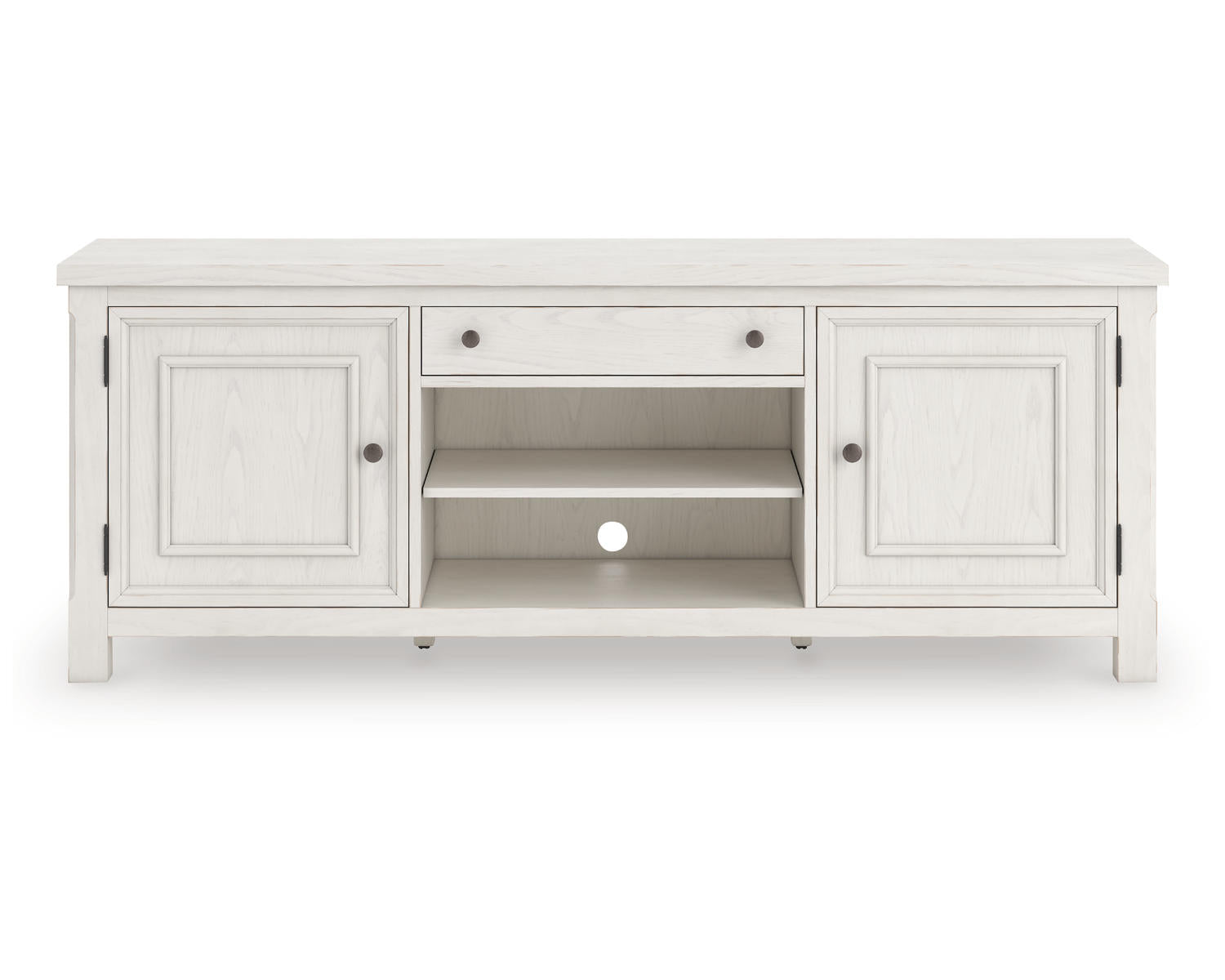 Meet the Robbinsdale 72" TV Stand — an extra large antique white media console designed to anchor larger living spaces with timeless style and practical function. This versatile piece provides a generous surface for a big screen and room for media devices, gaming gear, and accessories.