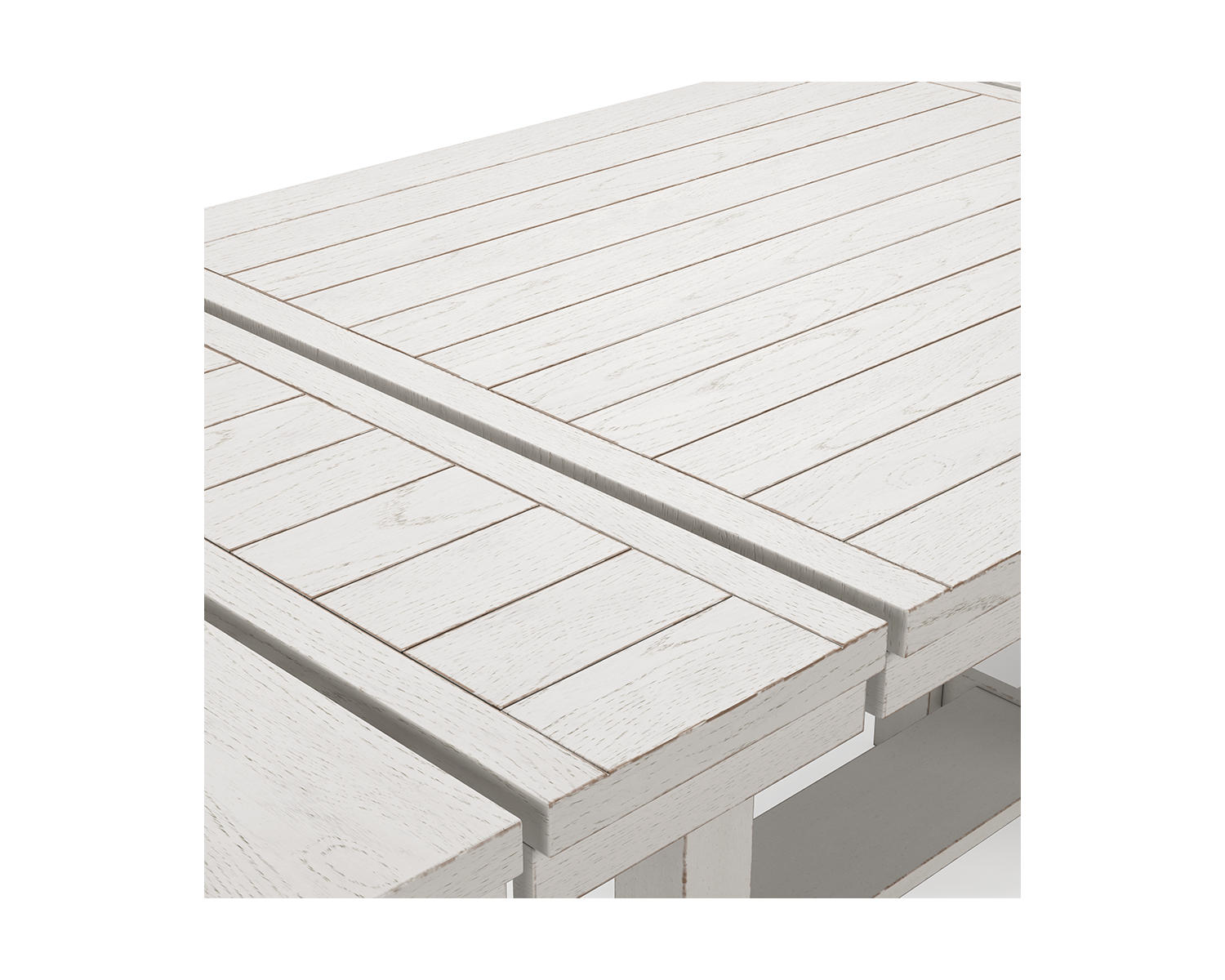 The ensemble includes a convenient counter-height table and four stools, all finished in an inviting antique white. Its clean lines and timeless silhouette help blend with a wide range of interiors, from farmhouse to modern casual. The compact footprint makes it well-suited for kitchens, breakfast nooks, or open-plan living areas while still offering comfortable seating for guests.