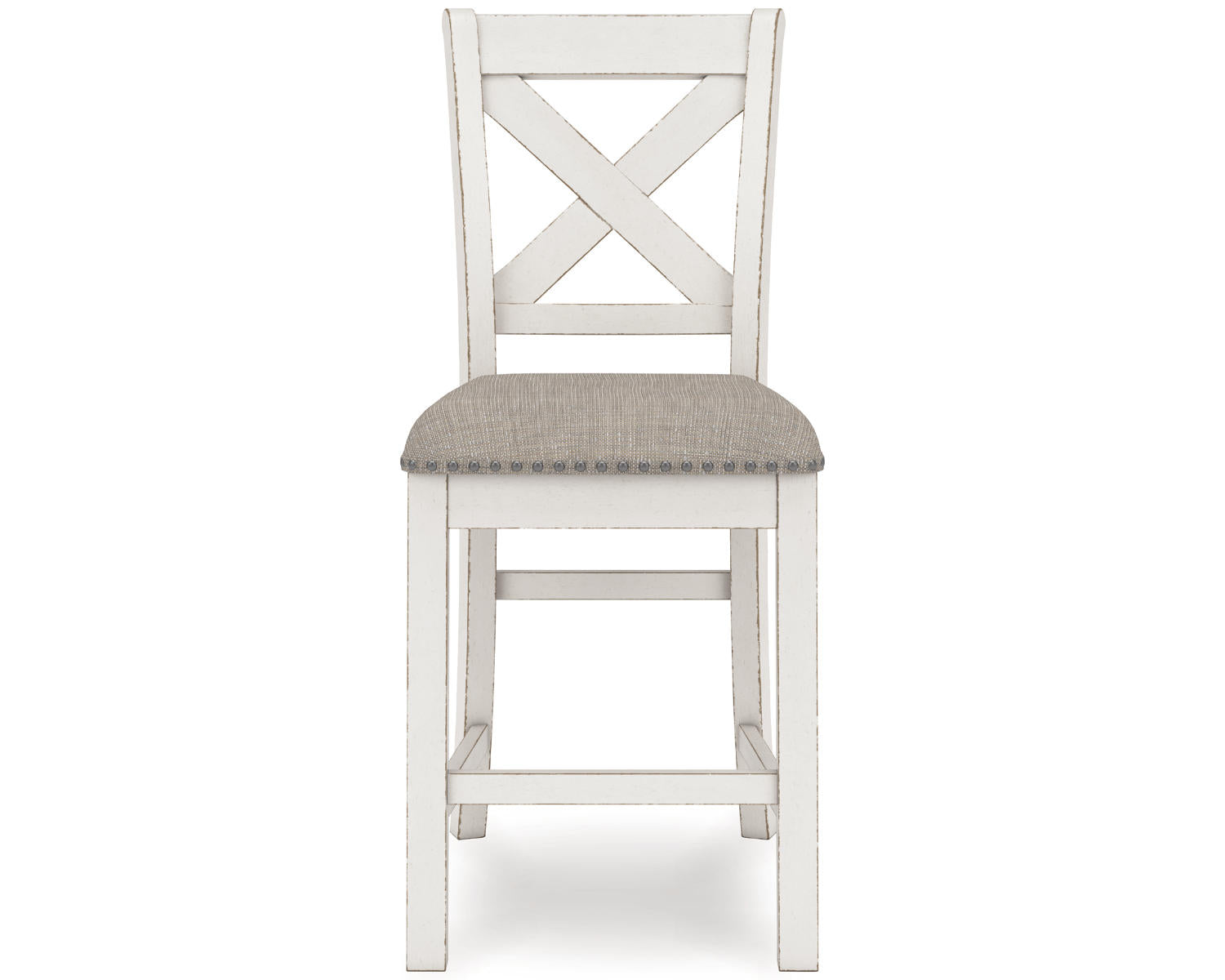 Introducing the Robbinsdale counter-height dining set, a complete 7-piece collection designed for kitchens and casual dining spaces. It pairs a counter-height table with six coordinating barstools, finished in antique white to bring timeless charm to any room.