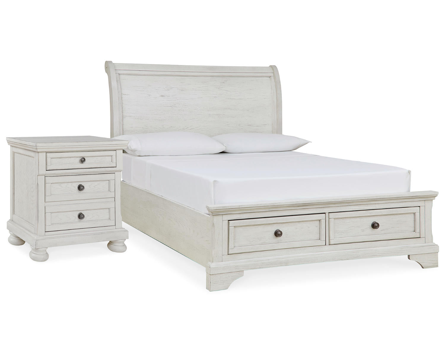 Robbinsdale Full Storage Bed & Nightstand — Antique White