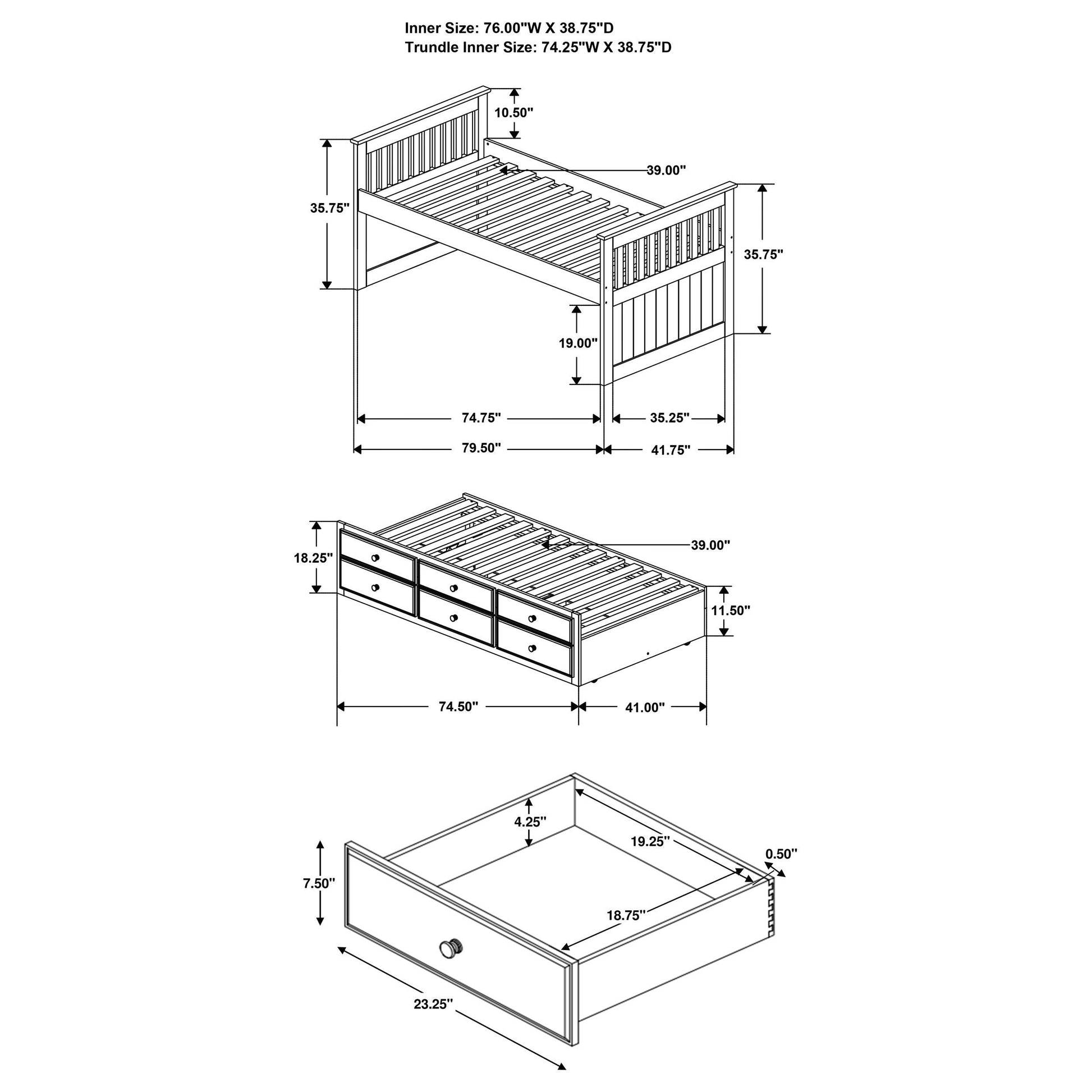 - Trundle: Captain's trundle for extra sleeping space or added storage