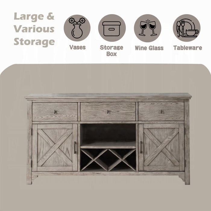 Meet the Rocky Server, a sturdy, stylish storage and media console designed for everyday living spaces. It combines a gray oak finish with a durable wood and veneer construction to anchor your entertainment setup with practical storage and clean, contemporary lines.