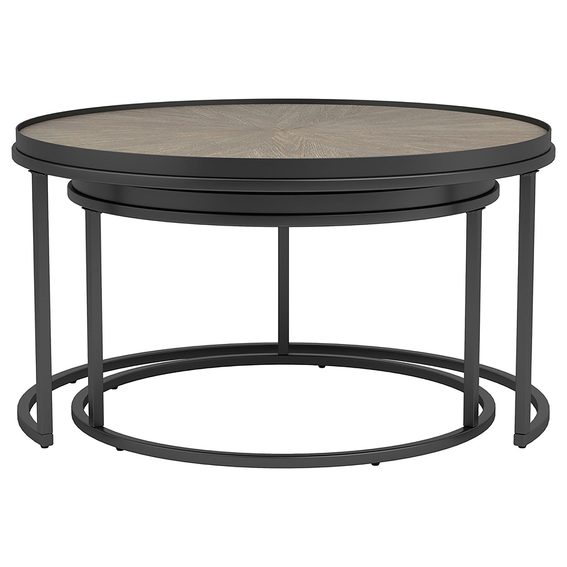 Rodrigo 2-piece Round Wood Nesting Table Set Weathered Elm