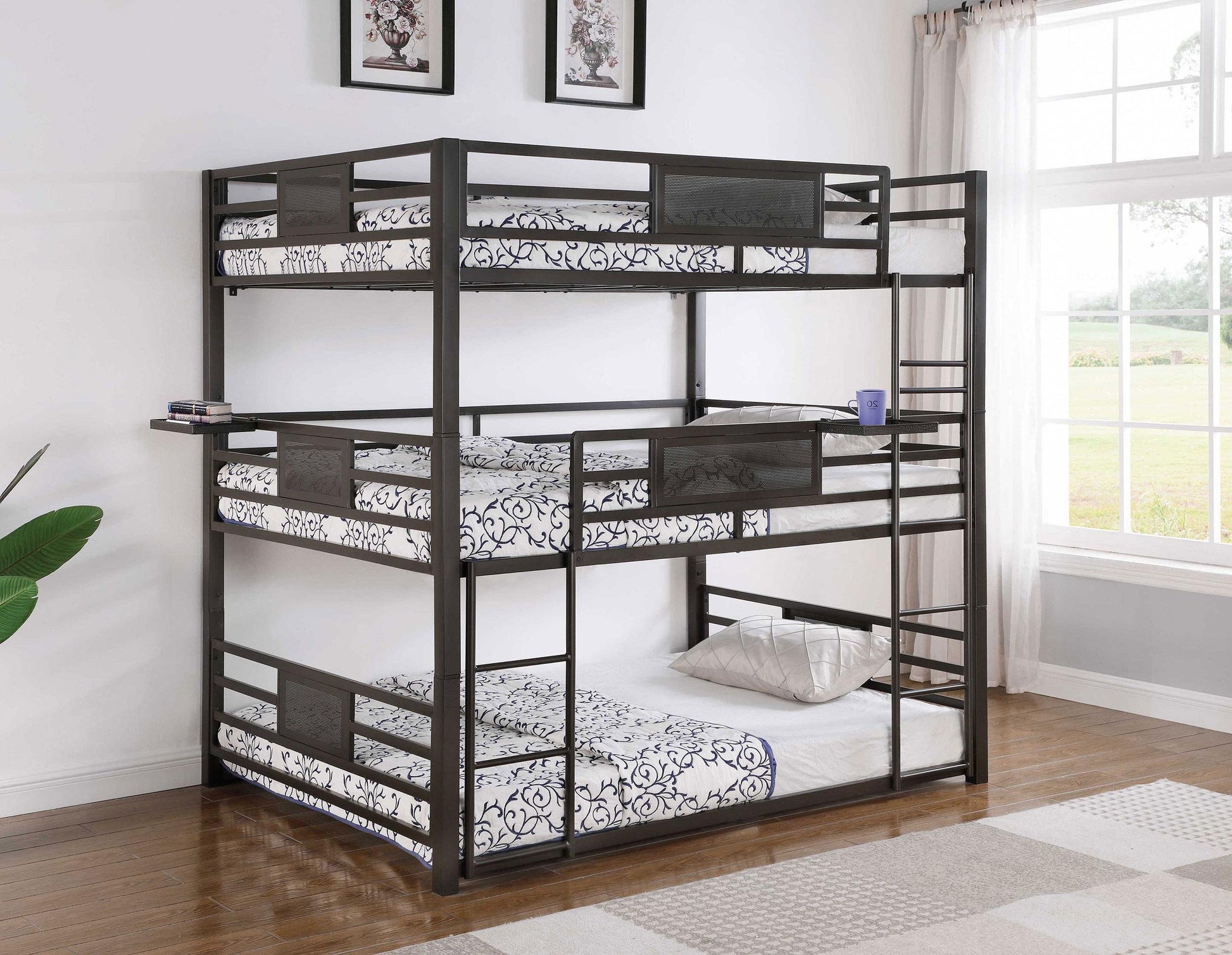 Rogen Metal Full Triple Bunk Bed Dark Bronze