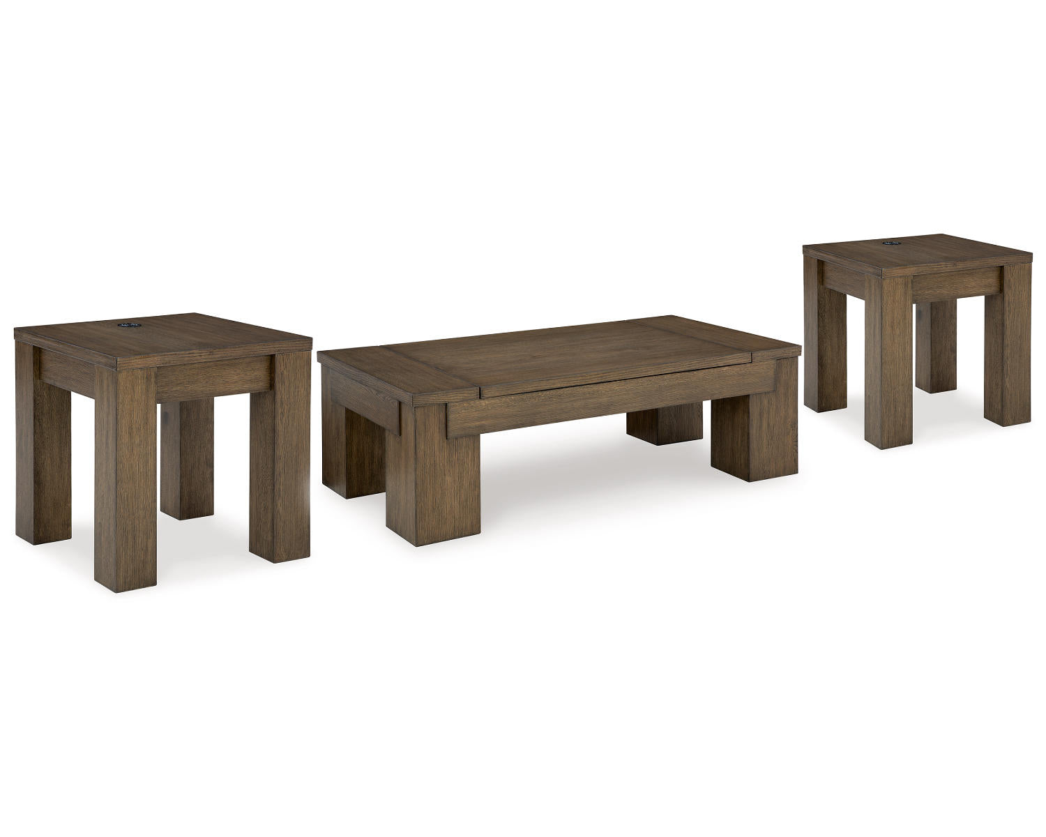 Rosswain Lift-top Coffee Table and 2 End Tables — Warm Brown