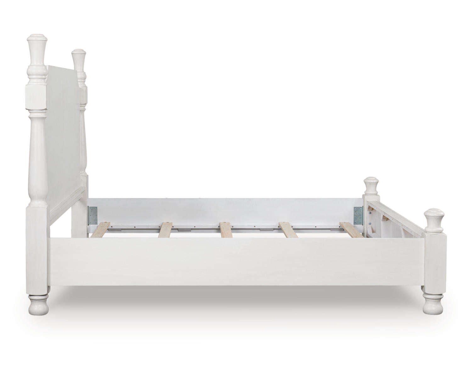 Experience timeless elegance with the Rowlenstown King Poster Bed in Antique White. This king-size bed is designed for bedrooms that value traditional style and lasting comfort. Its antique white finish and stately poster silhouette create an eye-catching centerpiece for your space.