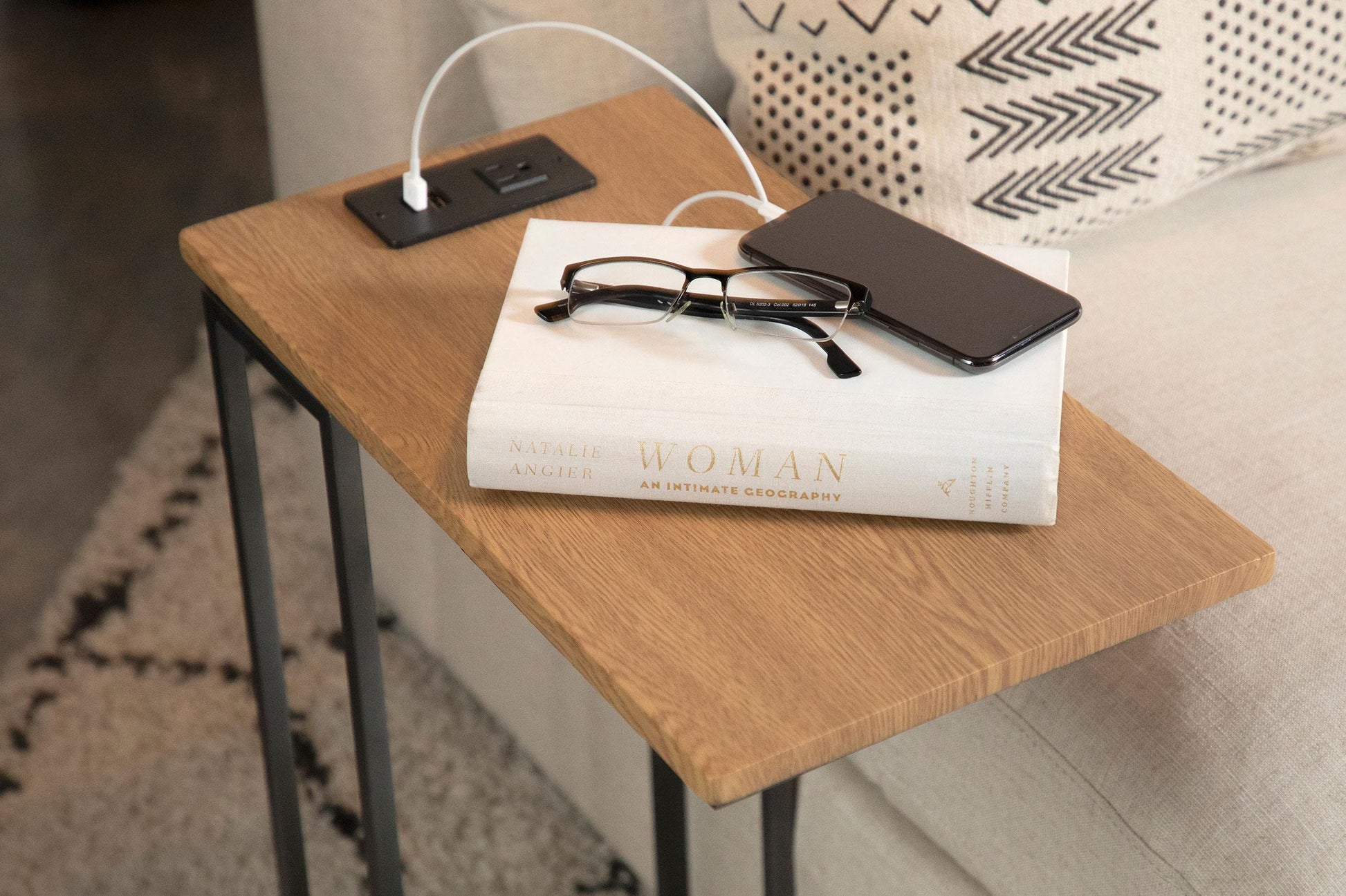 Rudy C-Shaped Side Table with Power Outlet Natural