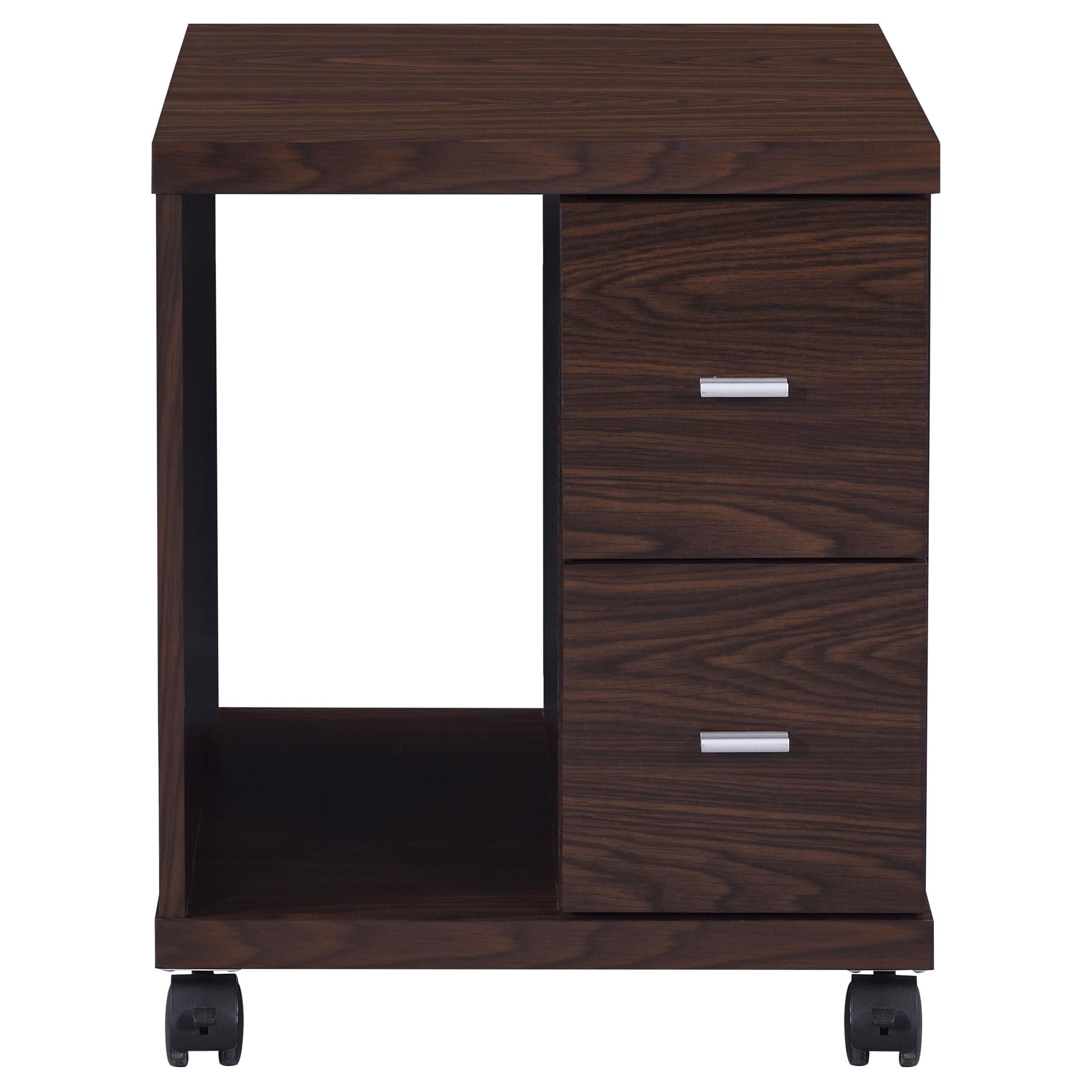 The Russell 2-drawer CPU Stand in Medium Oak is a compact workstation organizer designed to keep your computer tower, peripherals, and office essentials neatly stored. Ideal for home offices and shared workspaces, it combines practical storage with a warm, natural finish that fits a variety of decors.