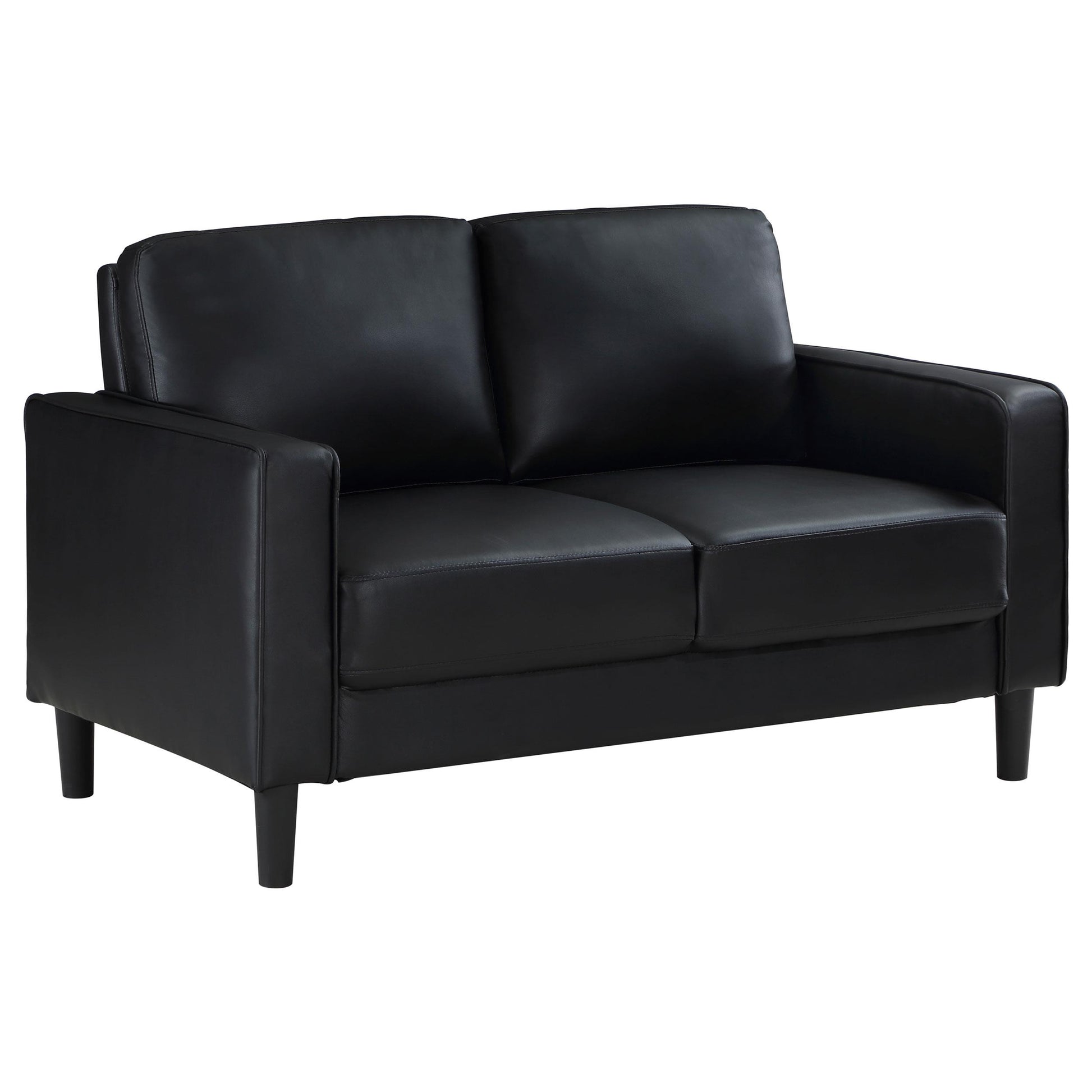 The Ruth 3-piece upholstered track arm sofa set in black brings modern comfort and versatile style to contemporary living spaces. Ideal for apartments, small-to-mid-sized rooms, or anyone updating their home, this set blends clean lines with inviting seating for everyday relaxation. Create a cohesive, refined look with a seating solution that adapts to your space.