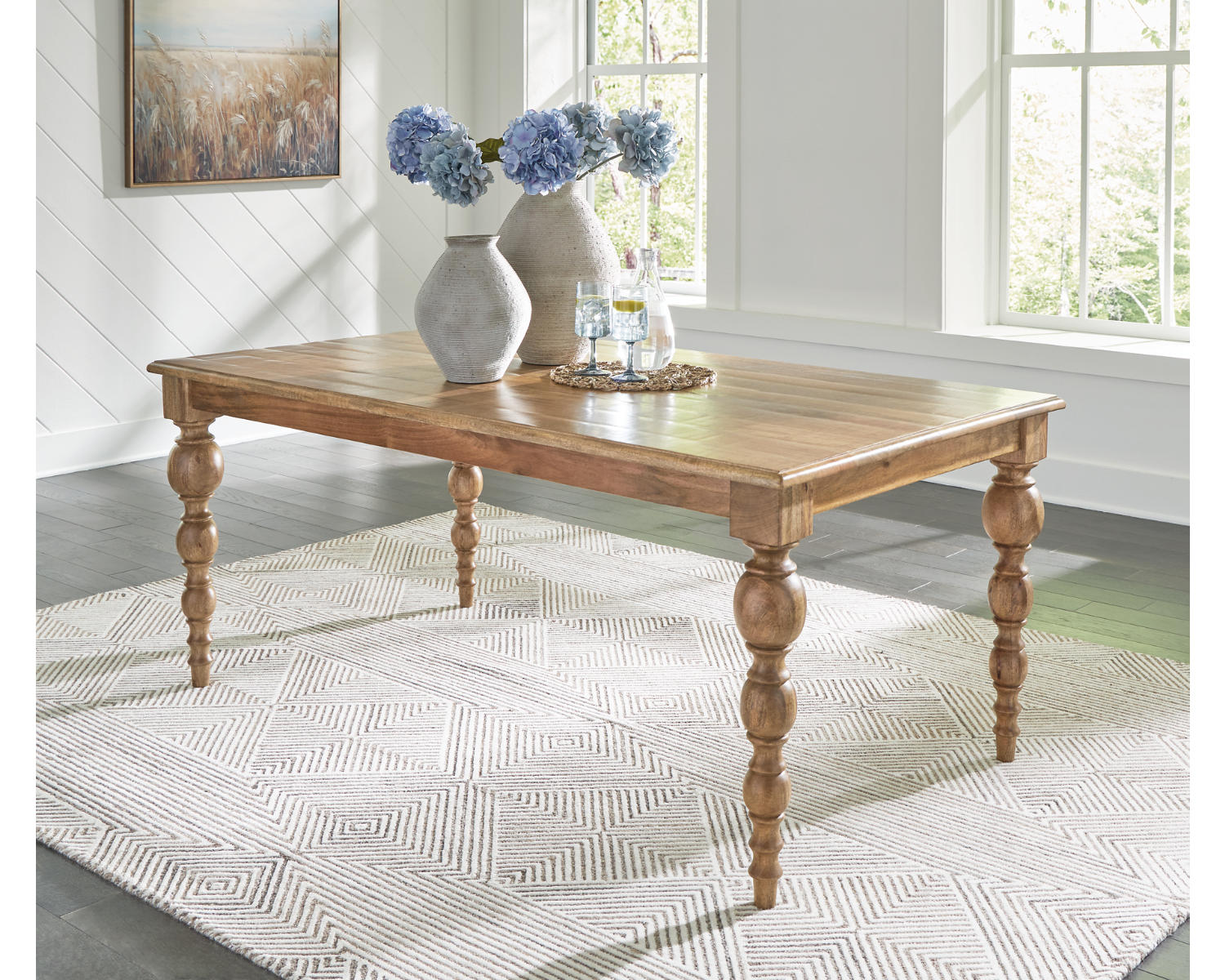 Meet the Rybergston Dining Table, a rectangular dining room table in a light brown finish that brings warmth and practicality to everyday meals and special occasions alike. Designed for modern homes, this piece pairs clean lines with a timeless tone to fit a variety of decorating styles.