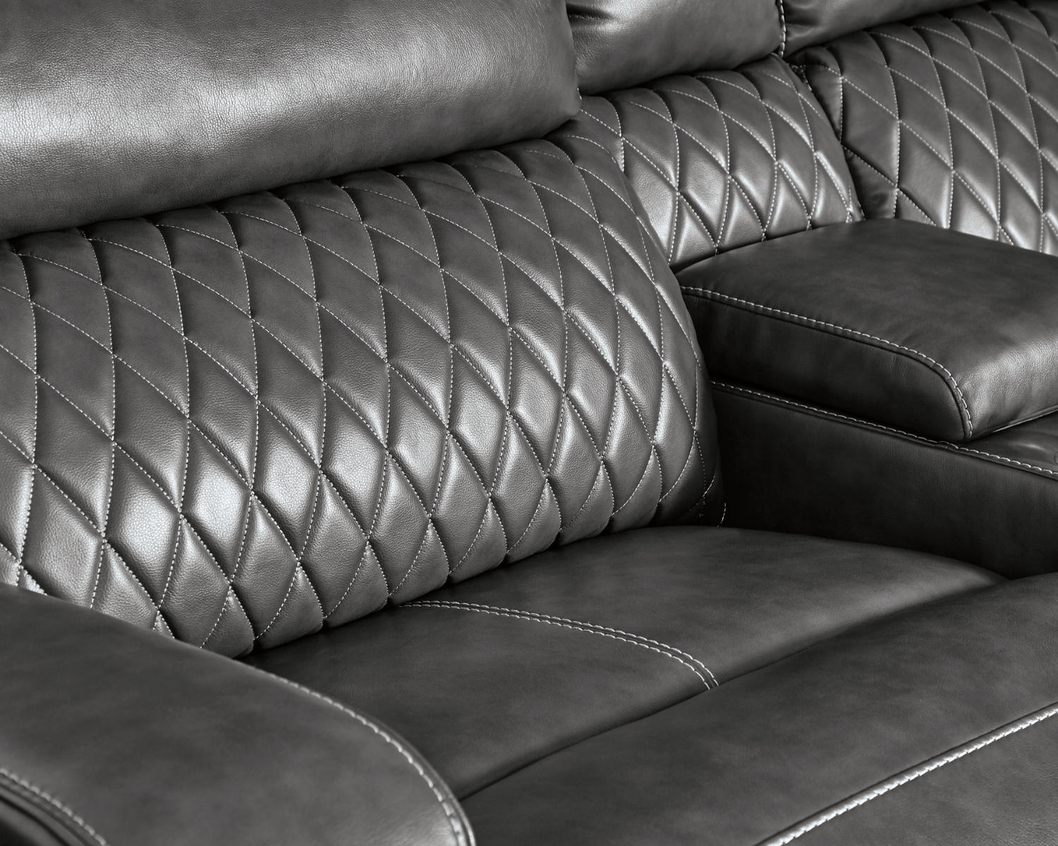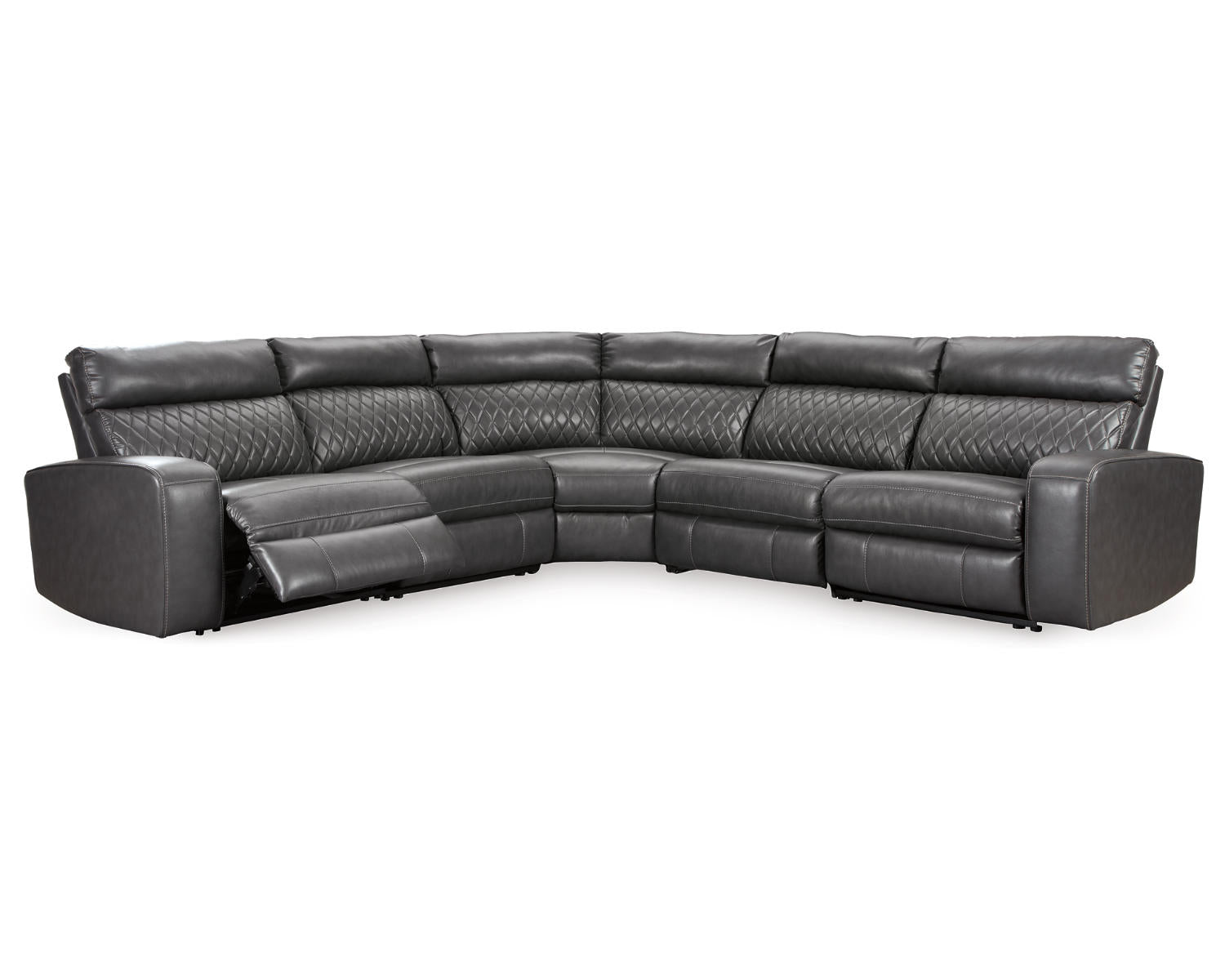 Meet Samperstone, a 5-piece power reclining sectional crafted in gray upholstery designed for modern living rooms. This modular set is ideal for families and entertaining, offering generous seating and effortless comfort at the touch of a button.