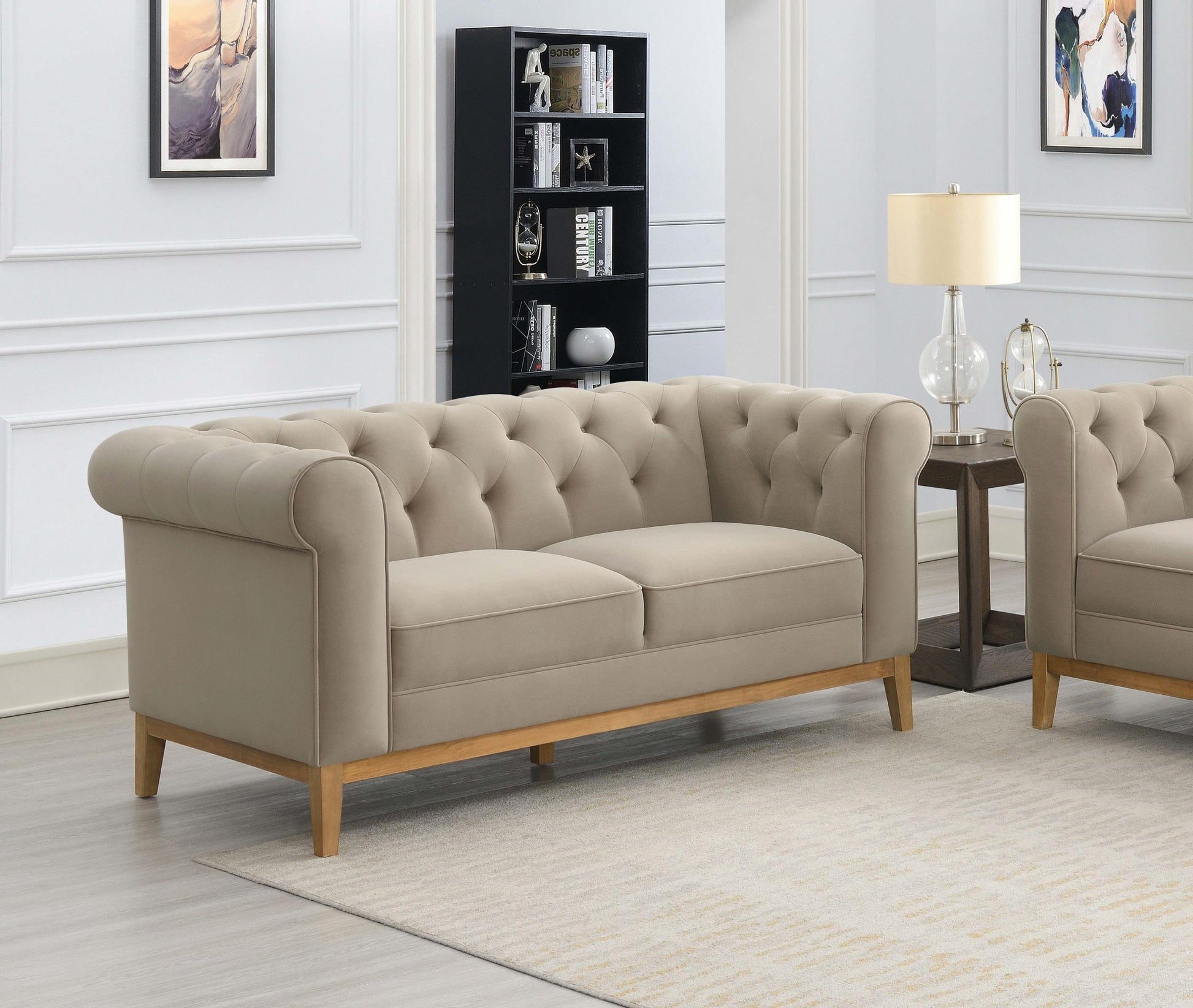Sandrine Button Tufted Tuxedo Arms Loveseat Camel