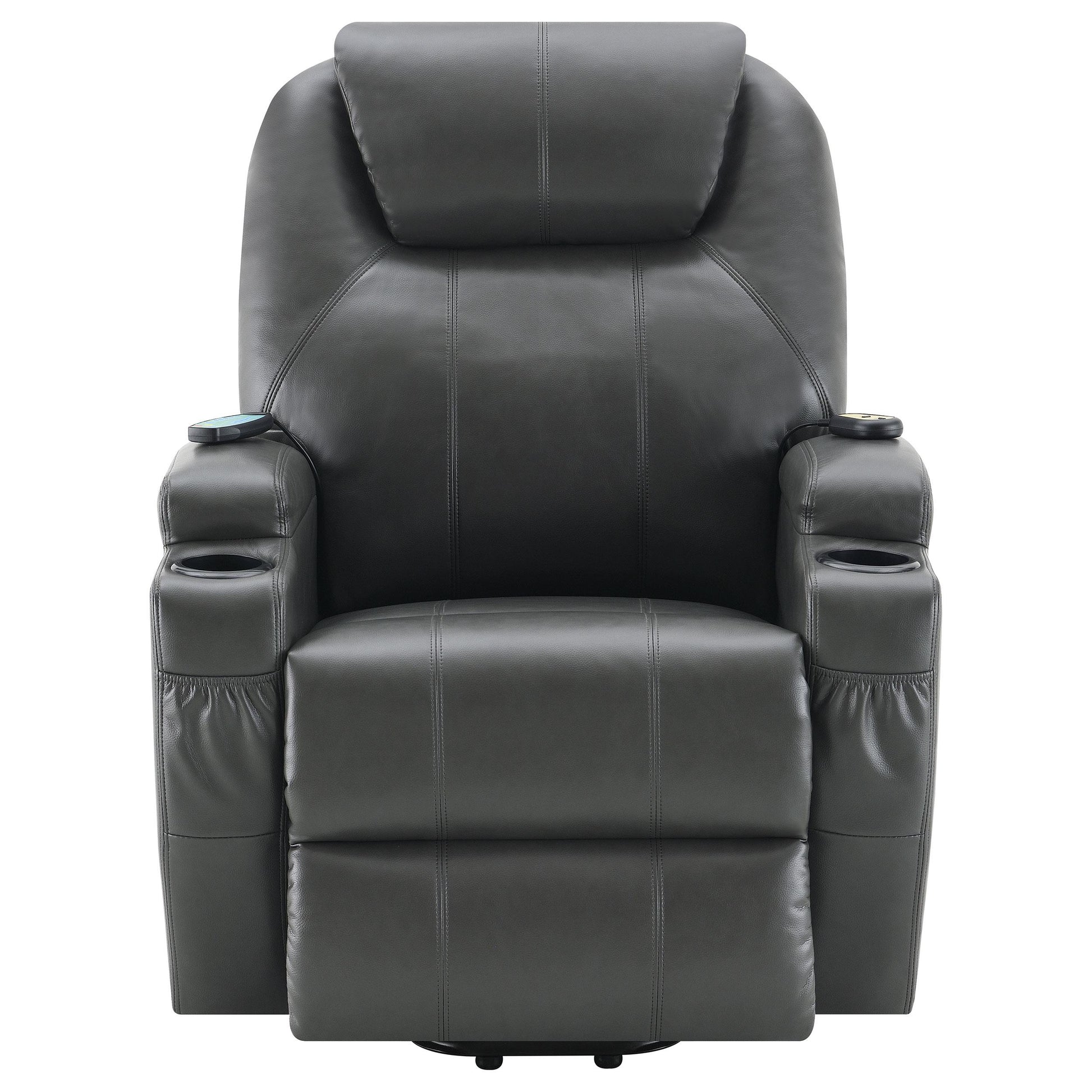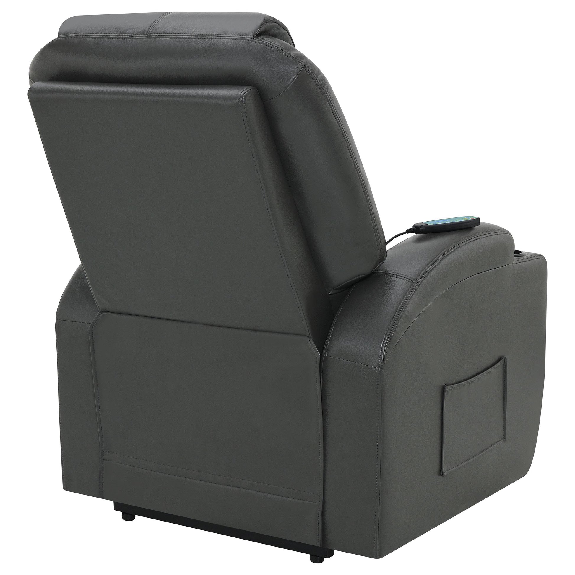 Sanger Upholstered Power Lift Massage Recliner Charcoal Grey
