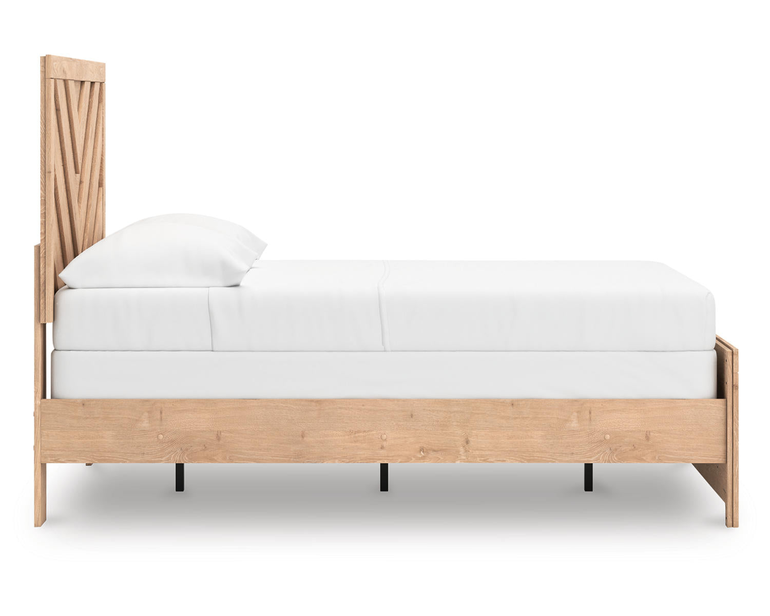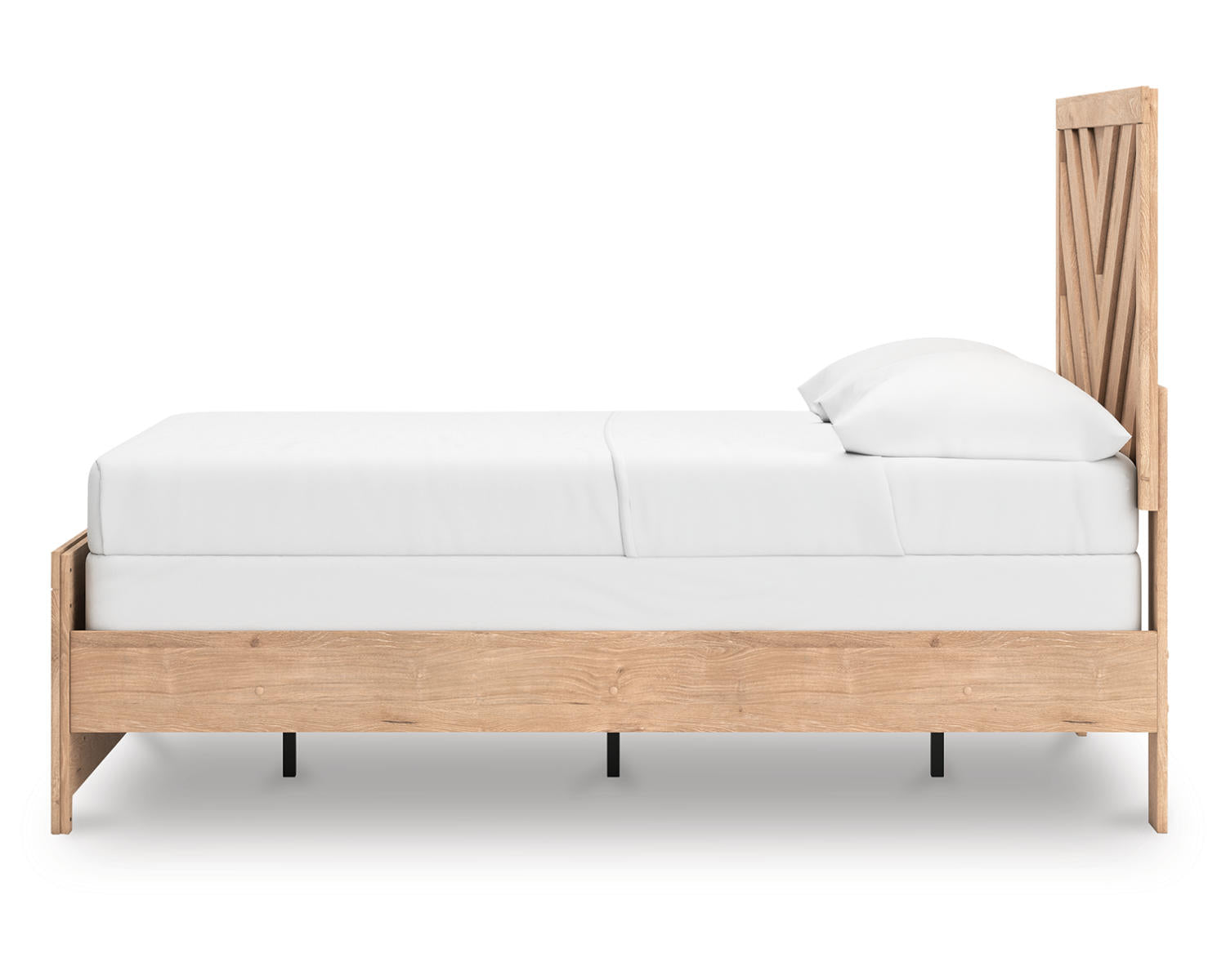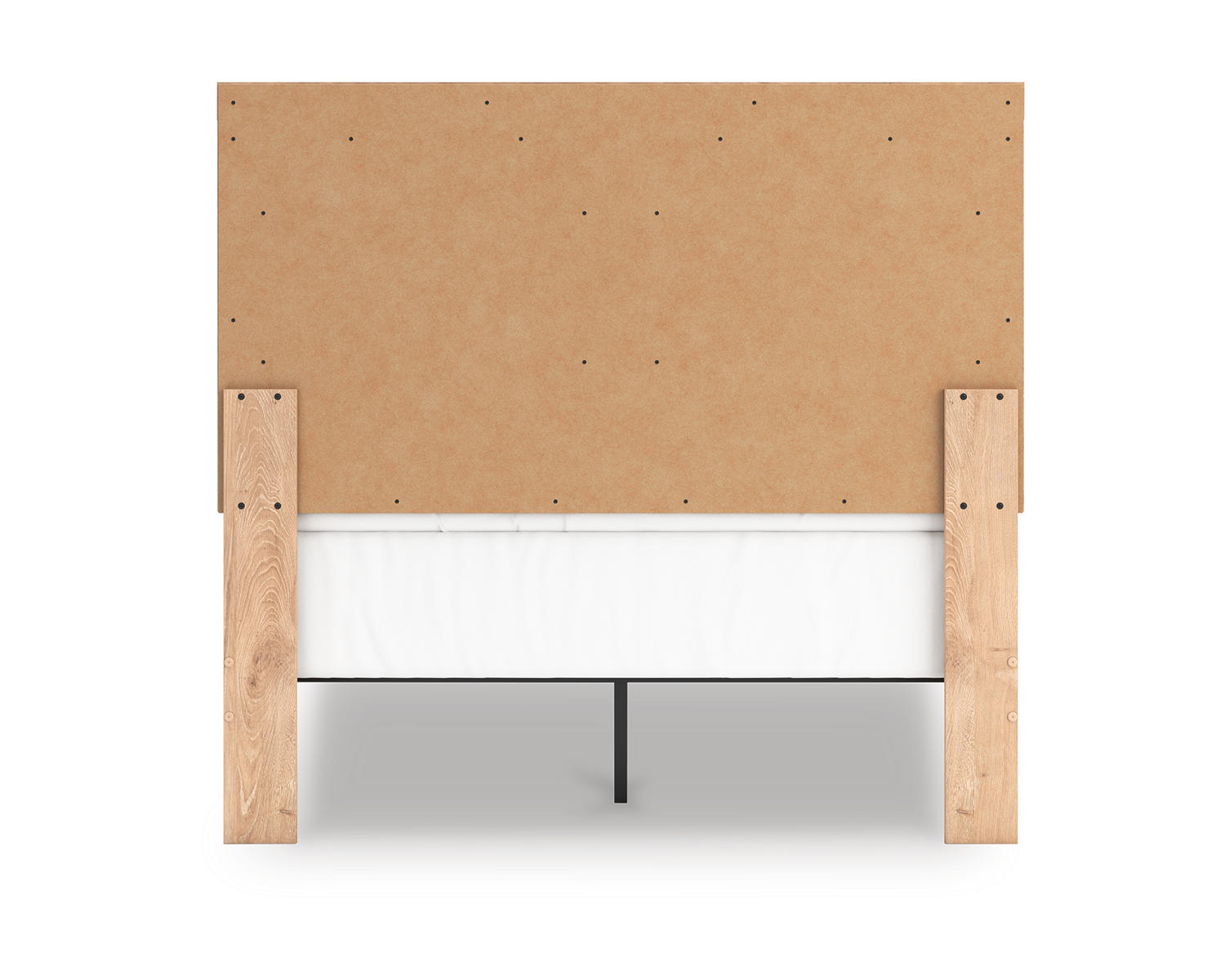 Introducing the Sanginlane Full Panel Bed in a warm tan finish—a versatile centerpiece designed for modern bedrooms. This full-size bed is ideal for those seeking clean lines, durable construction, and a timeless look that pairs with a range of decor styles. Built for everyday use, it blends seamlessly with your existing furniture while offering a calm, cohesive aesthetic.