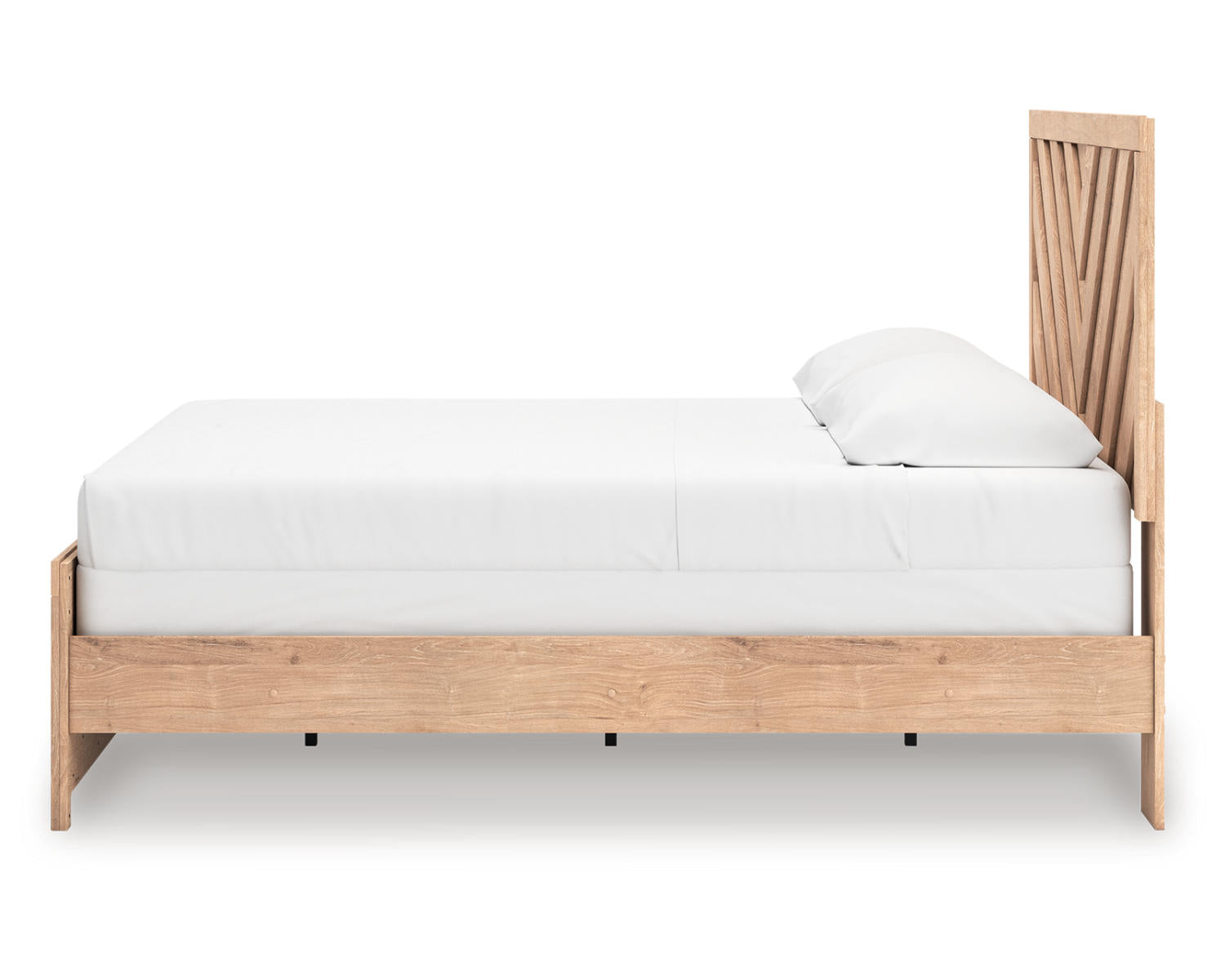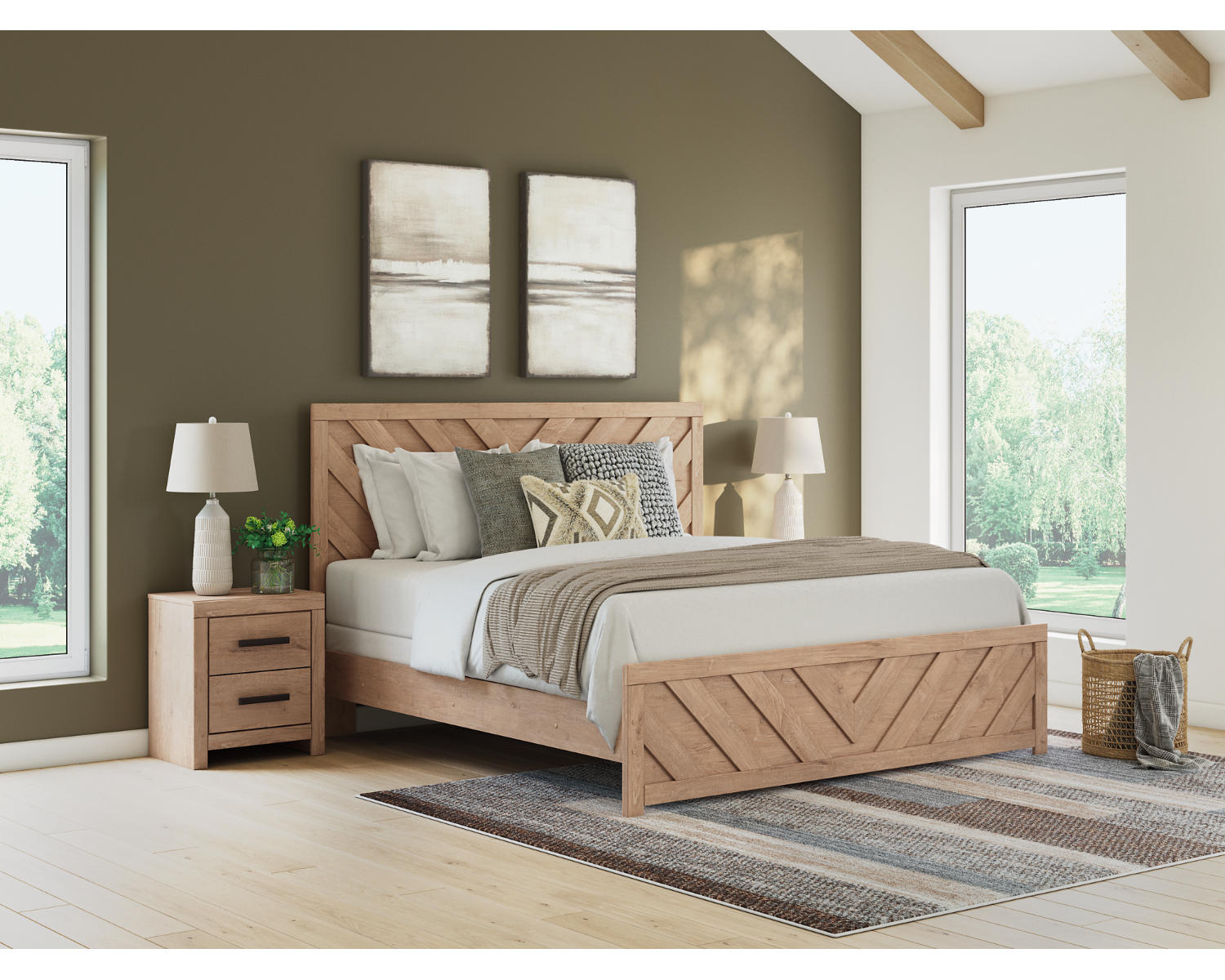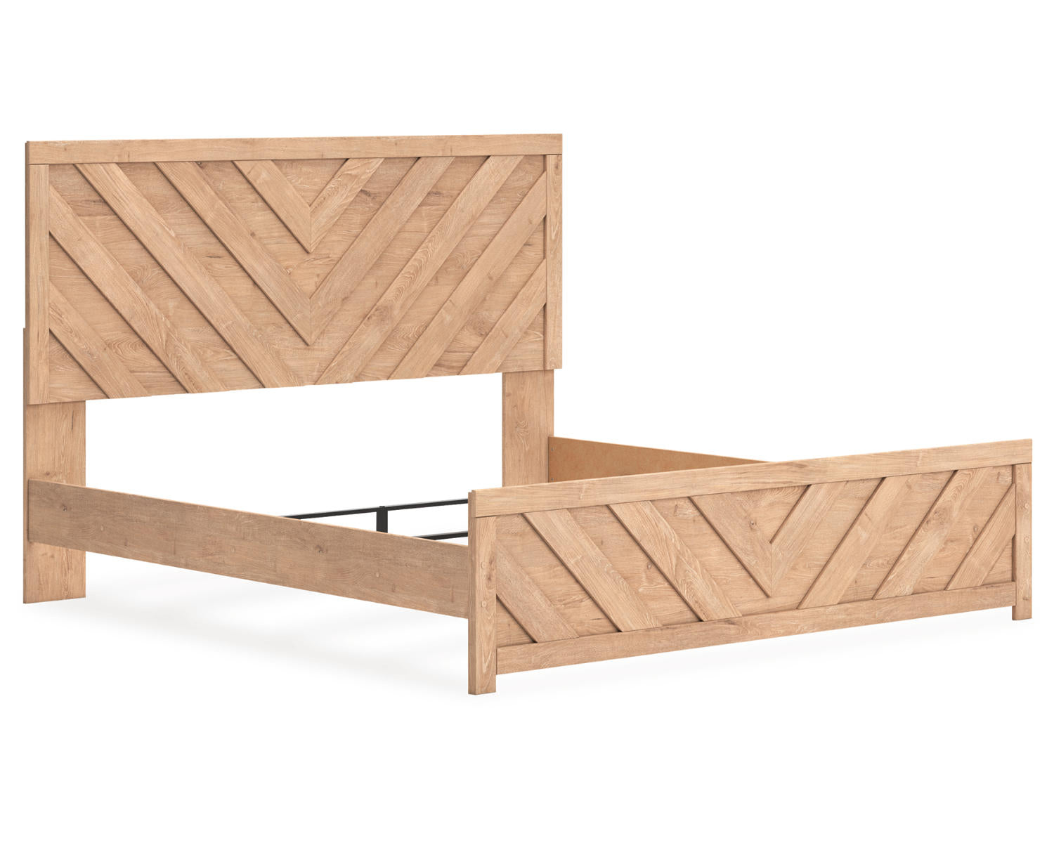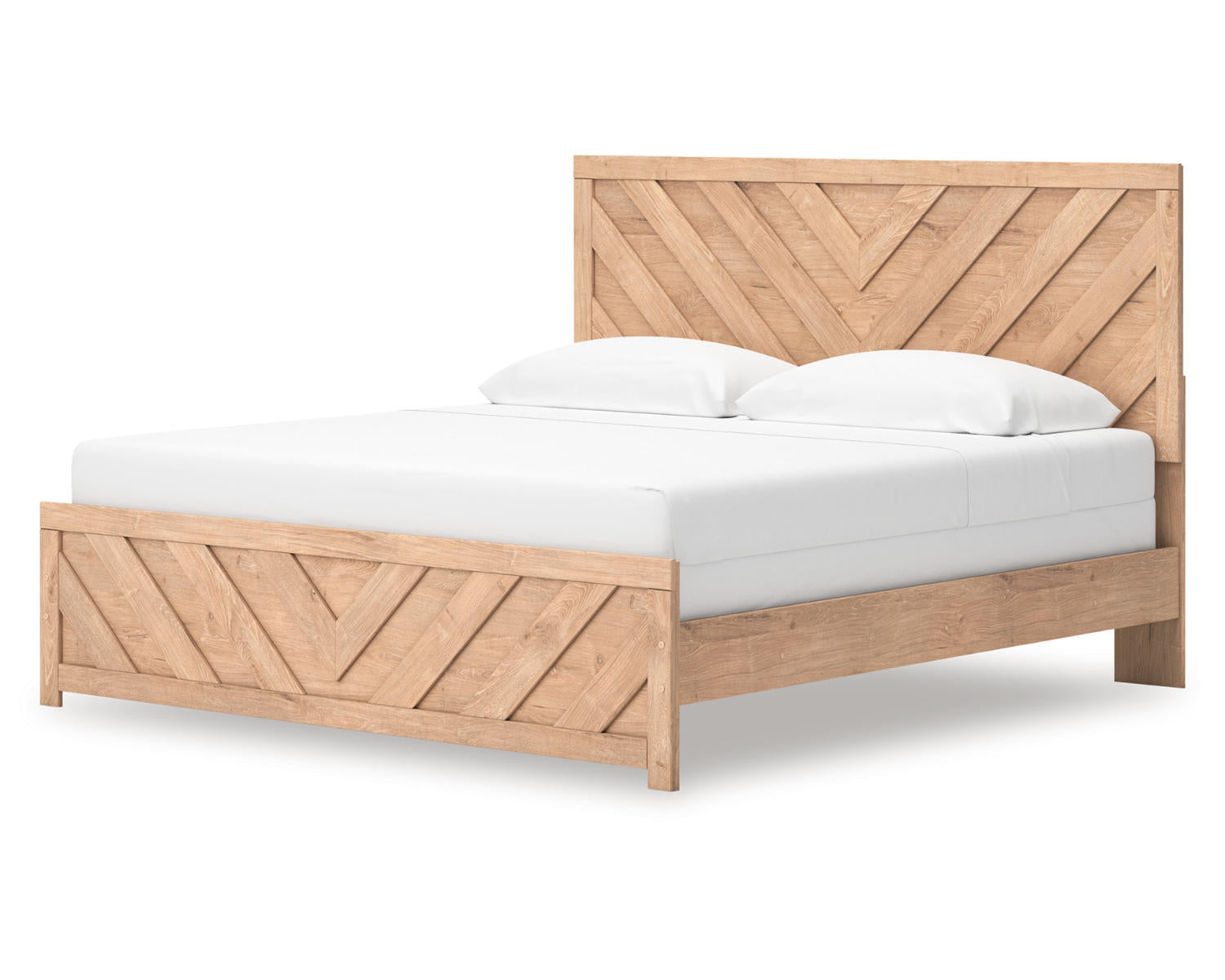 Discover the Sanginlane King Panel Bed, a sturdy and stylish centerpiece for a spacious master suite. Tailored for king-size mattresses, it blends classic panel detailing with a warm tan finish. This bed offers a timeless look that suits a range of bedroom styles.