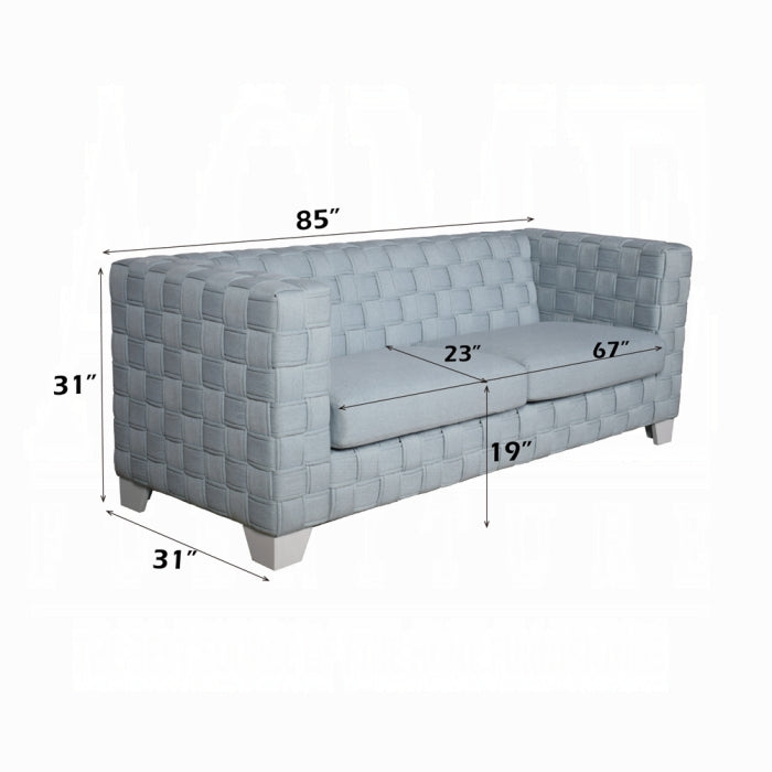 The Saree Sofa brings clean lines and a striking boxed silhouette to modern living spaces. Designed for those who value contemporary style with texture, it pairs light teal chenille upholstery with a white finish for a fresh, versatile look. The result is a bold yet approachable sofa that elevates any room.