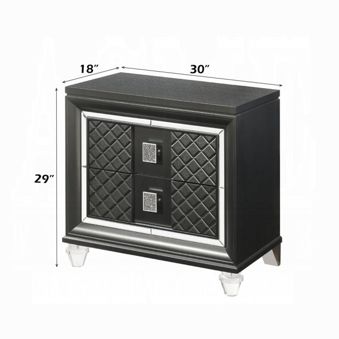 Meet the Sawyer Nightstand, a contemporary bedside companion designed for modern bedrooms. Built with a robust wood frame, acrylic legs, and a metallic gray finish, it offers a clean silhouette and a practical surface for essentials. Perfect for bedrooms, guest rooms, or apartments, it pairs well with a variety of decors and bed styles.