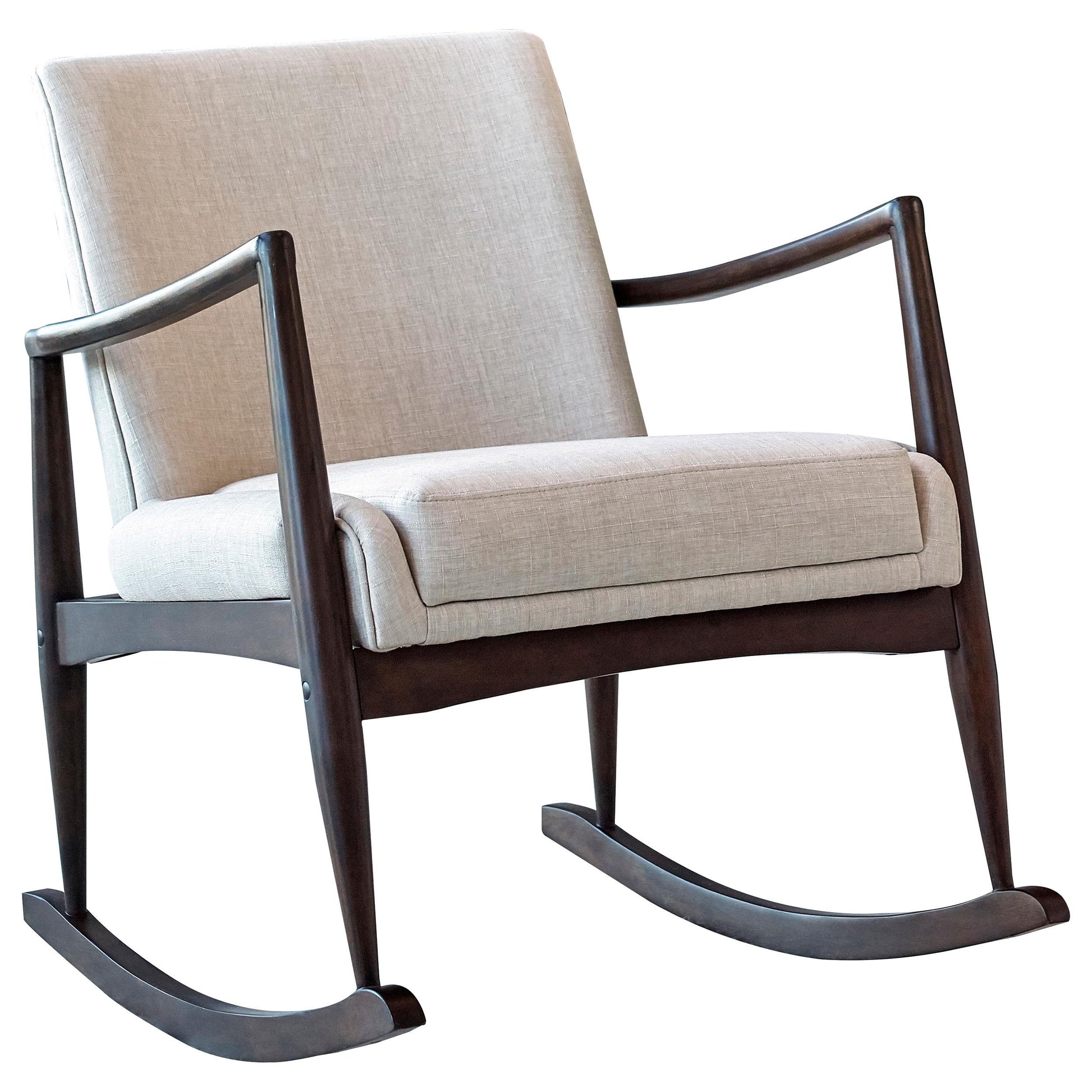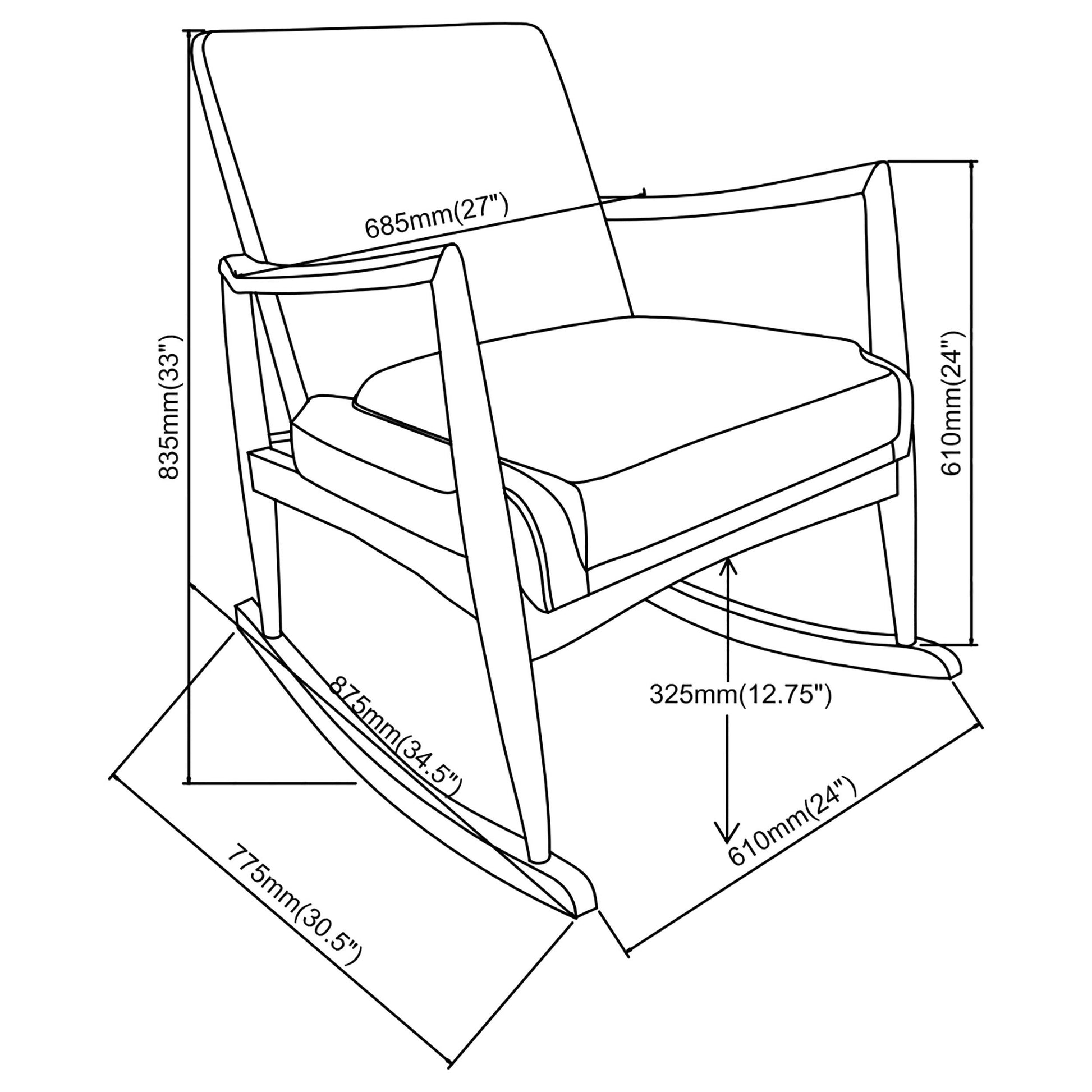 - Walnut-finish wooden rocking legs add natural warmth and stability.
