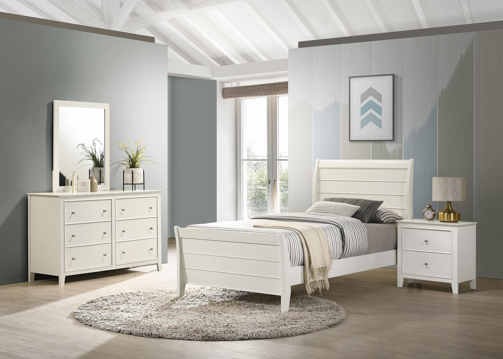 Selena 4-piece Twin Bedroom Set Cream White offers a clean, cohesive look for any twin-sized room. Designed for everyday living, this set combines a timeless cream finish with simple, versatile styling. It's ideal for teens, guests, or dorm rooms seeking a calm, organized space.