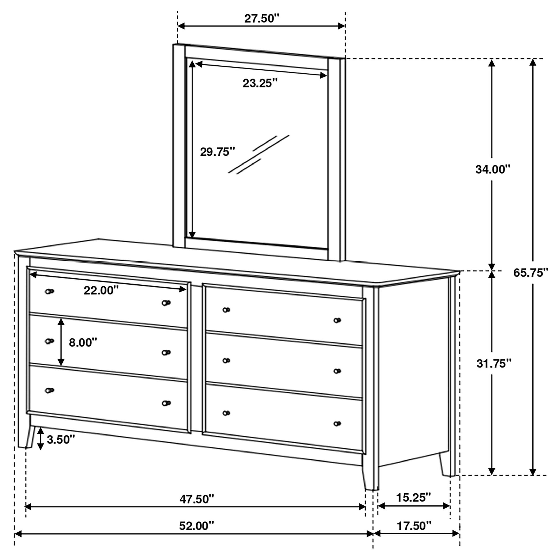 - Six drawers provide ample storage for clothing, accessories, and essentials.