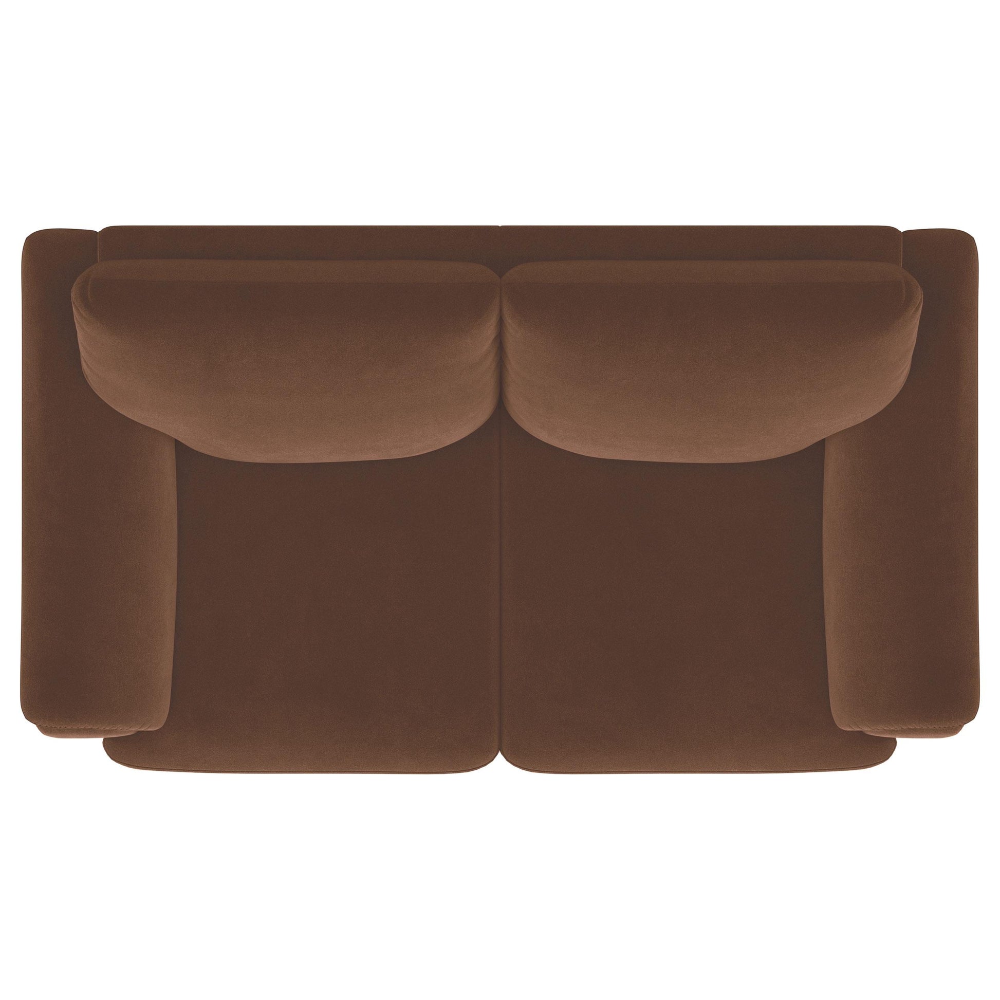 Introducing the Selma Velvet Upholstered Crescent Arm Loveseat in a rich Rust finish. This stylish piece is designed for modern living spaces, from compact apartments to generous lounges. The velvet upholstery and curved crescent arms bring warmth and texture to any room, while the compact silhouette fits neatly in smaller floor plans.