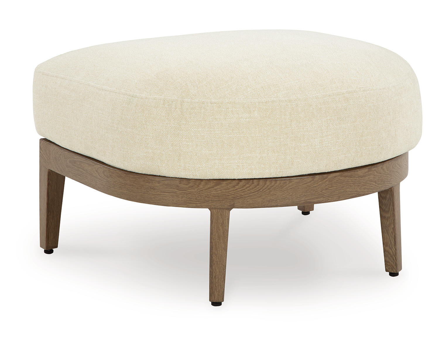 Meet the Serene Bay Outdoor Ottoman with Cushion — a compact, versatile piece designed for outdoor spaces. Perfect as a footrest or extra seat on patios, decks, or poolside lounges, it pairs a dark brown frame with a crisp white cushion for a timeless look.