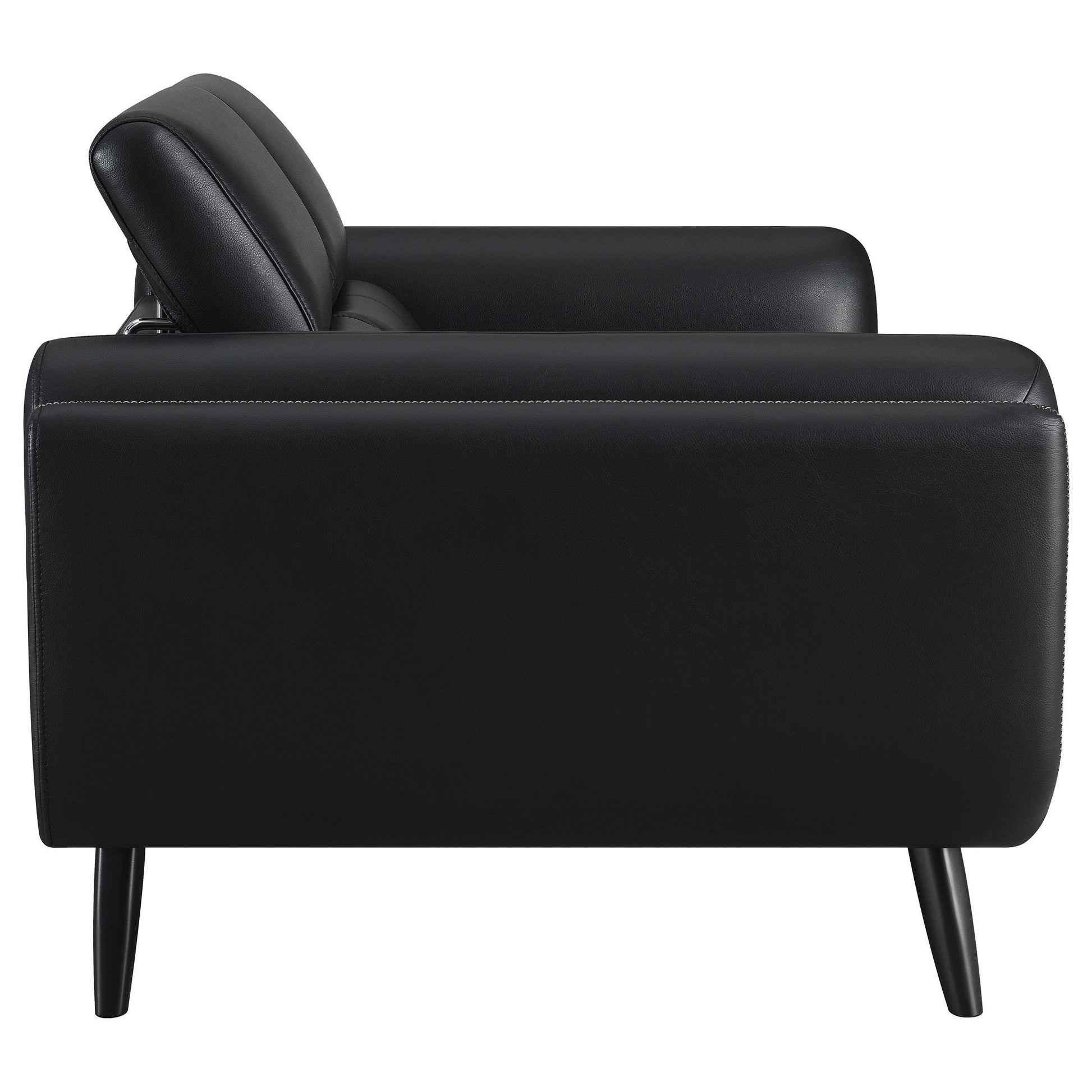 Meet the Shania Upholstered Low Back Loveseat in Black — a compact, modern seating option built for small spaces. Ideal for apartments, living rooms, or guest areas, it offers a clean silhouette with comfortable seating and versatile style. Its low back design creates an open, lounge-ready look that fits a range of decors.