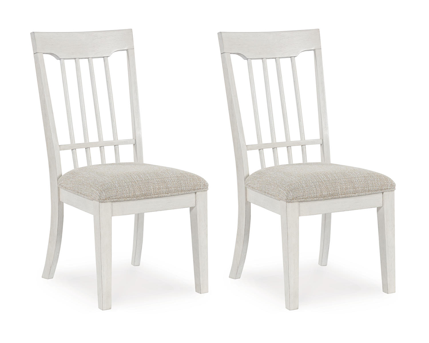 Designed for everyday dining, the Shaybrock Dining Chair brings comfort and classic style to any table. This set of two upholstered side chairs in antique white and brown is ideal for kitchens, dining rooms, or breakfast nooks. With a timeless two-tone finish and inviting seating, it's built to coordinate with a wide range of decors.