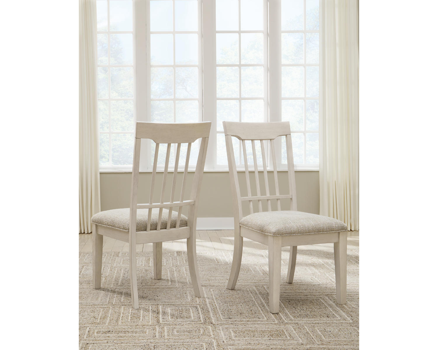- Set of 2 dining chairs, ideal for quickly outfitting a dining table or kitchen nook.