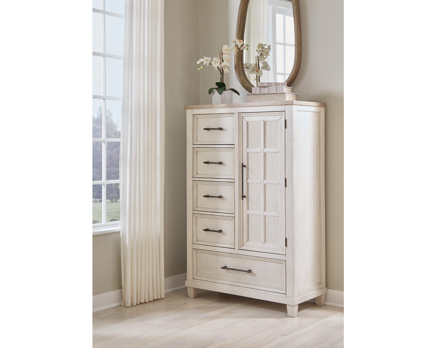 The Shaybrock Door Chest blends practical storage with classic style. Designed for bedrooms, living rooms, or entryways, it hides belongings behind a single door while adding a touch of vintage charm. Its Antique White/Brown finish complements a wide range of décors.