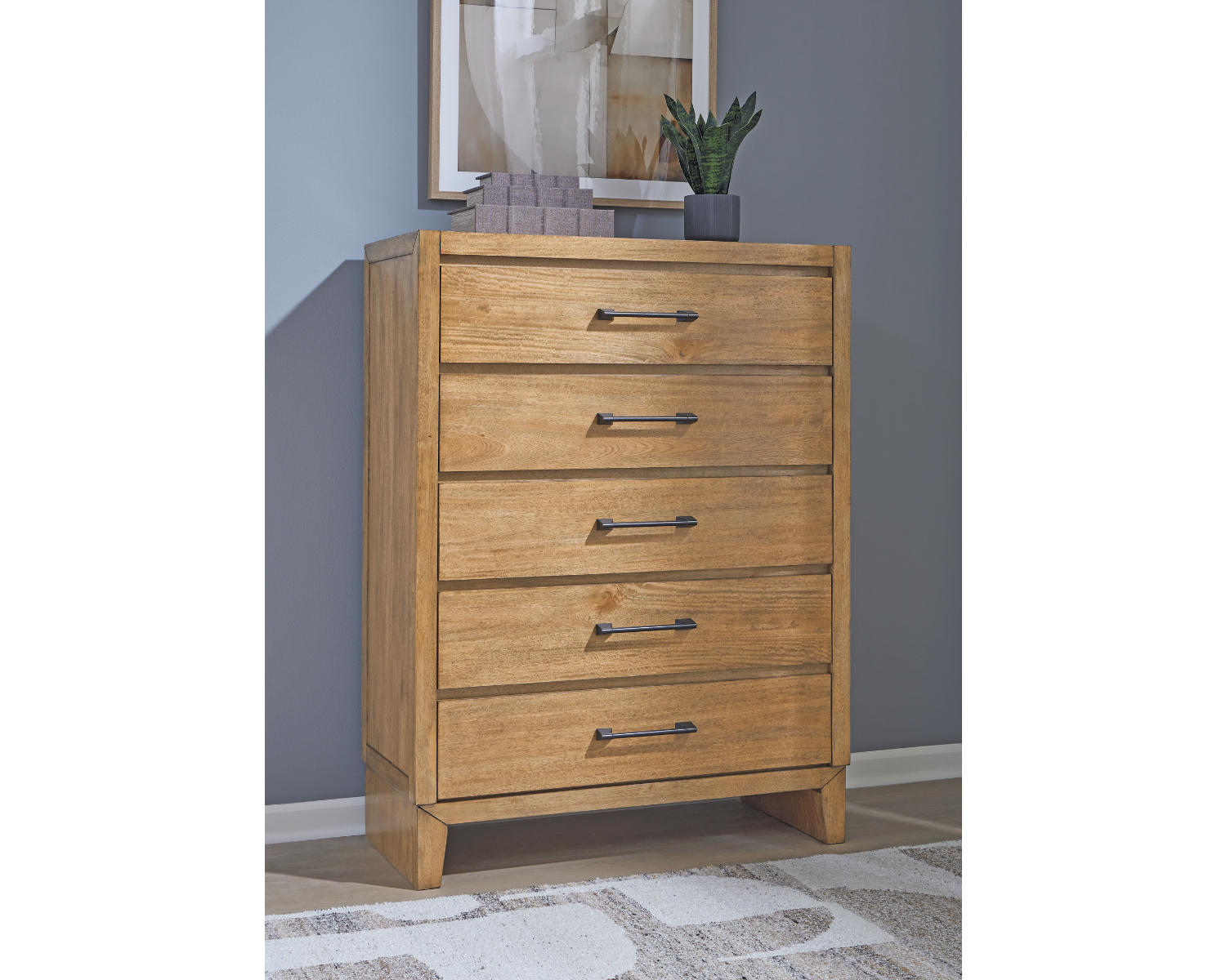 Sherbana Chest of Drawers — Five-Drawer Light Brown