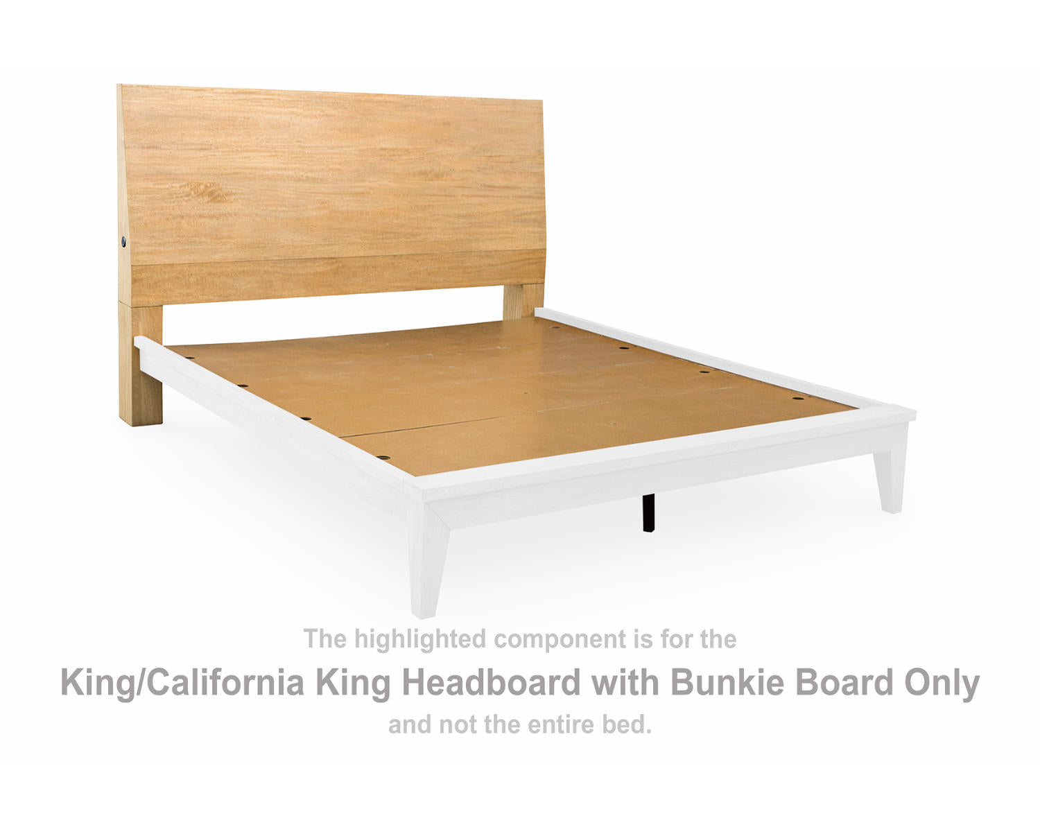 The Sherbana King/California King Headboard with Bunkie Board offers a complete sleep setup for King and California King beds. Finished in a light brown tone, it blends with a variety of bedroom décors. This combination provides both style and practical, ready-to-use support for your mattress setup.
