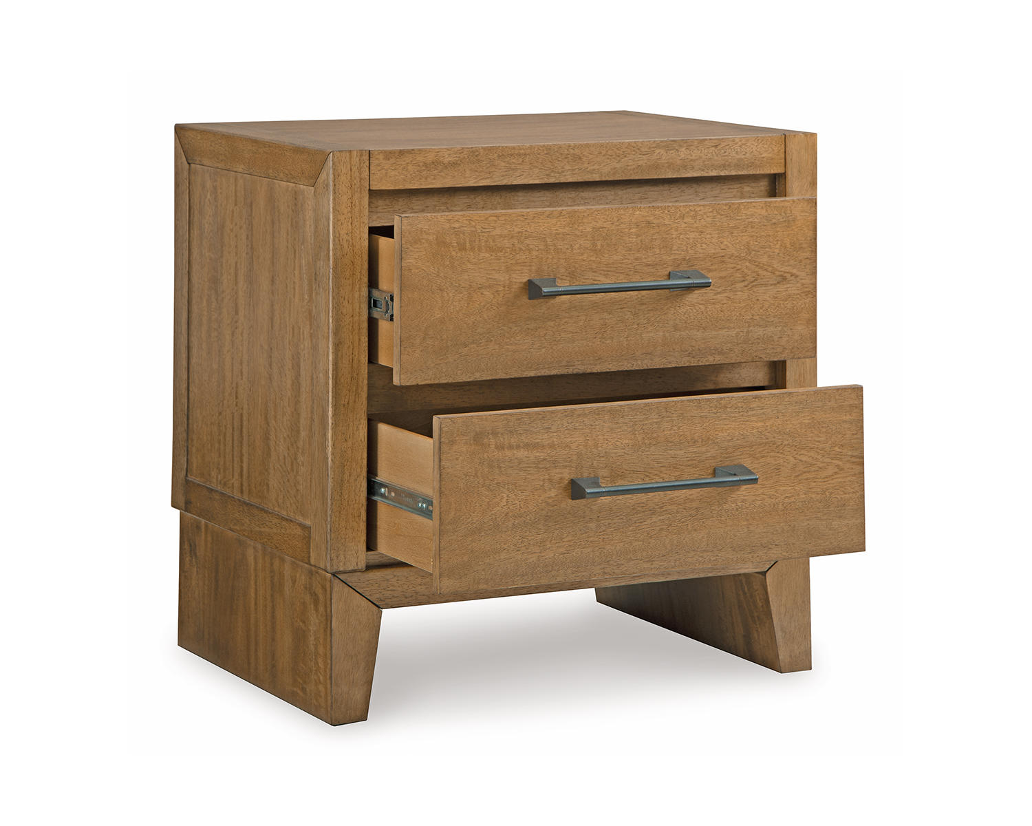 The Sherbana Nightstand is a two-drawer bedside table finished in light brown. It brings practical storage and a warm touch to any bedroom, pairing easily with a range of styles. Built for daily use, it keeps essentials within reach while maintaining a tidy look.