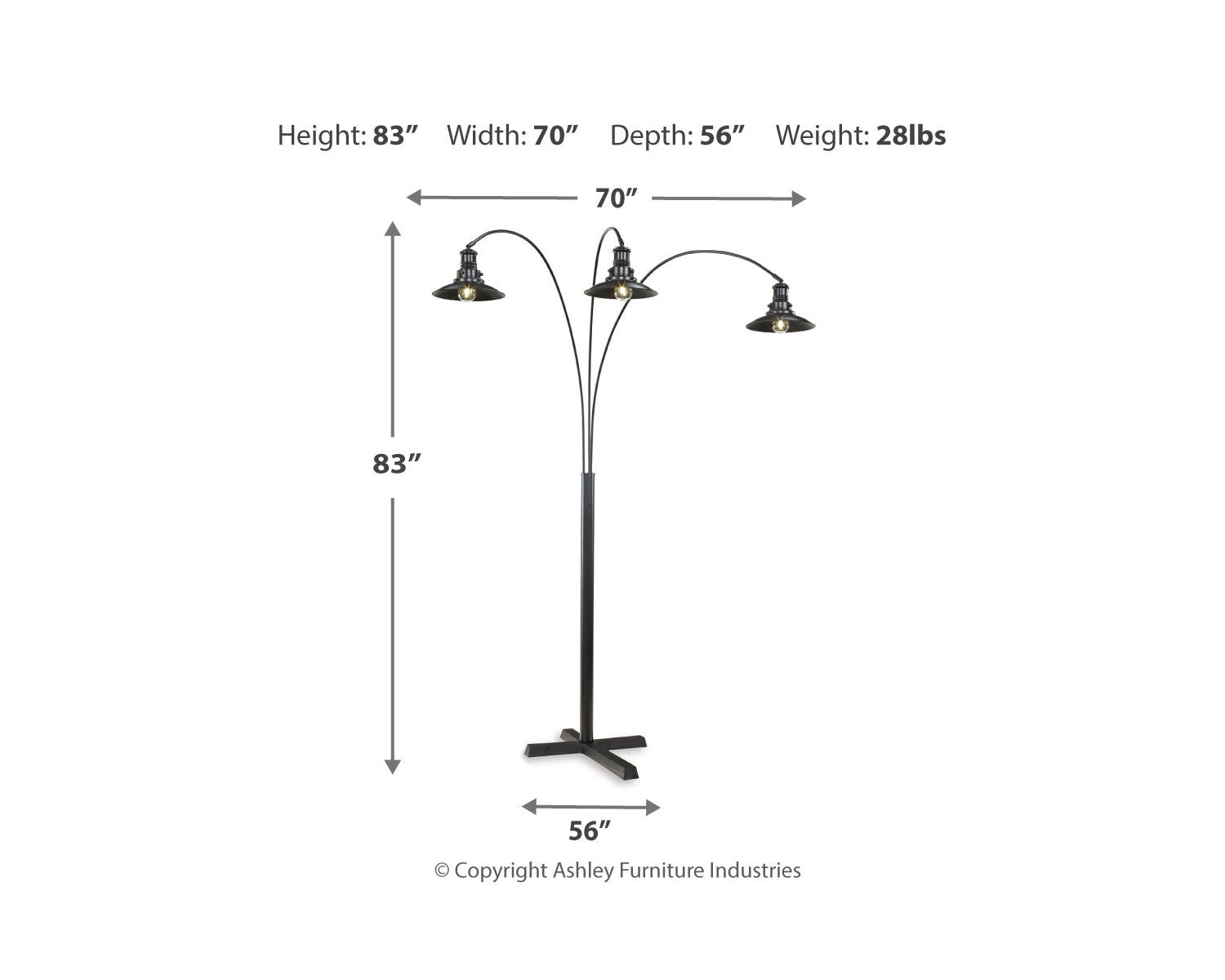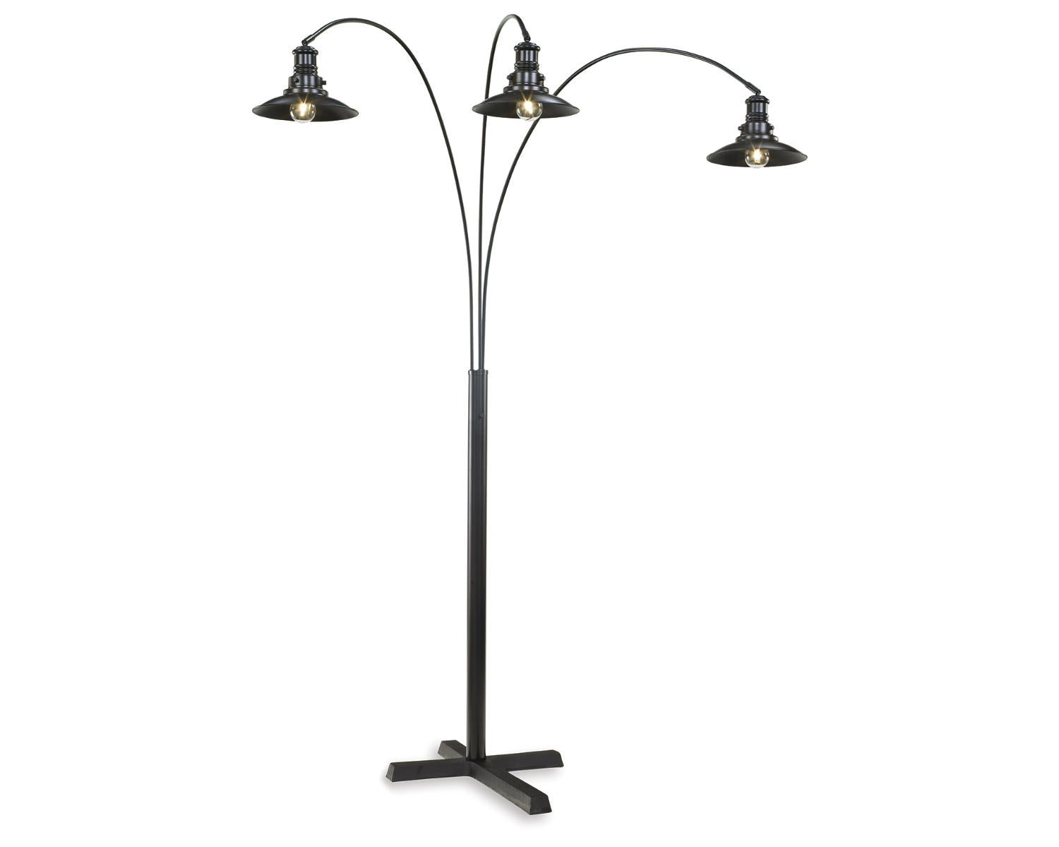 - Design: Arc-shaped lamp with a curved arm that directs light above seating areas.
