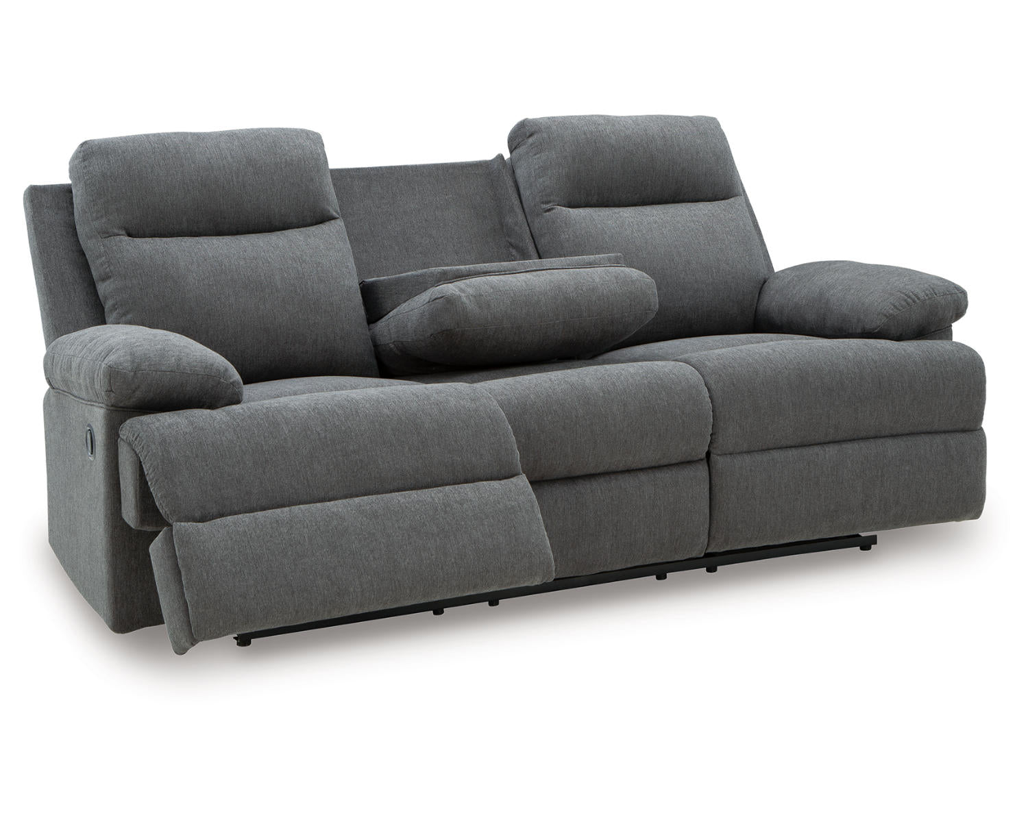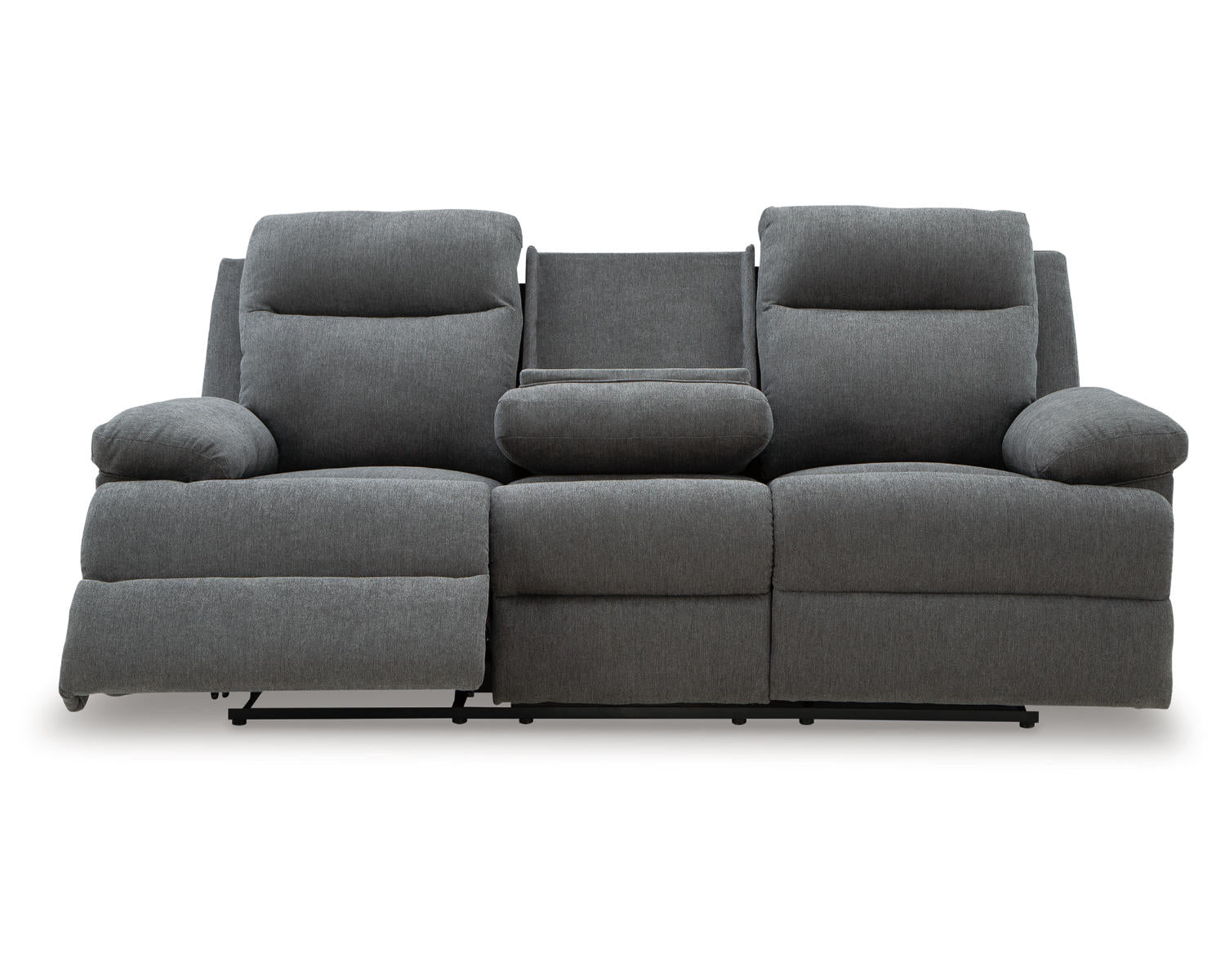 Side-Swipe Reclining Sofa with Drop Down Table — Charcoal