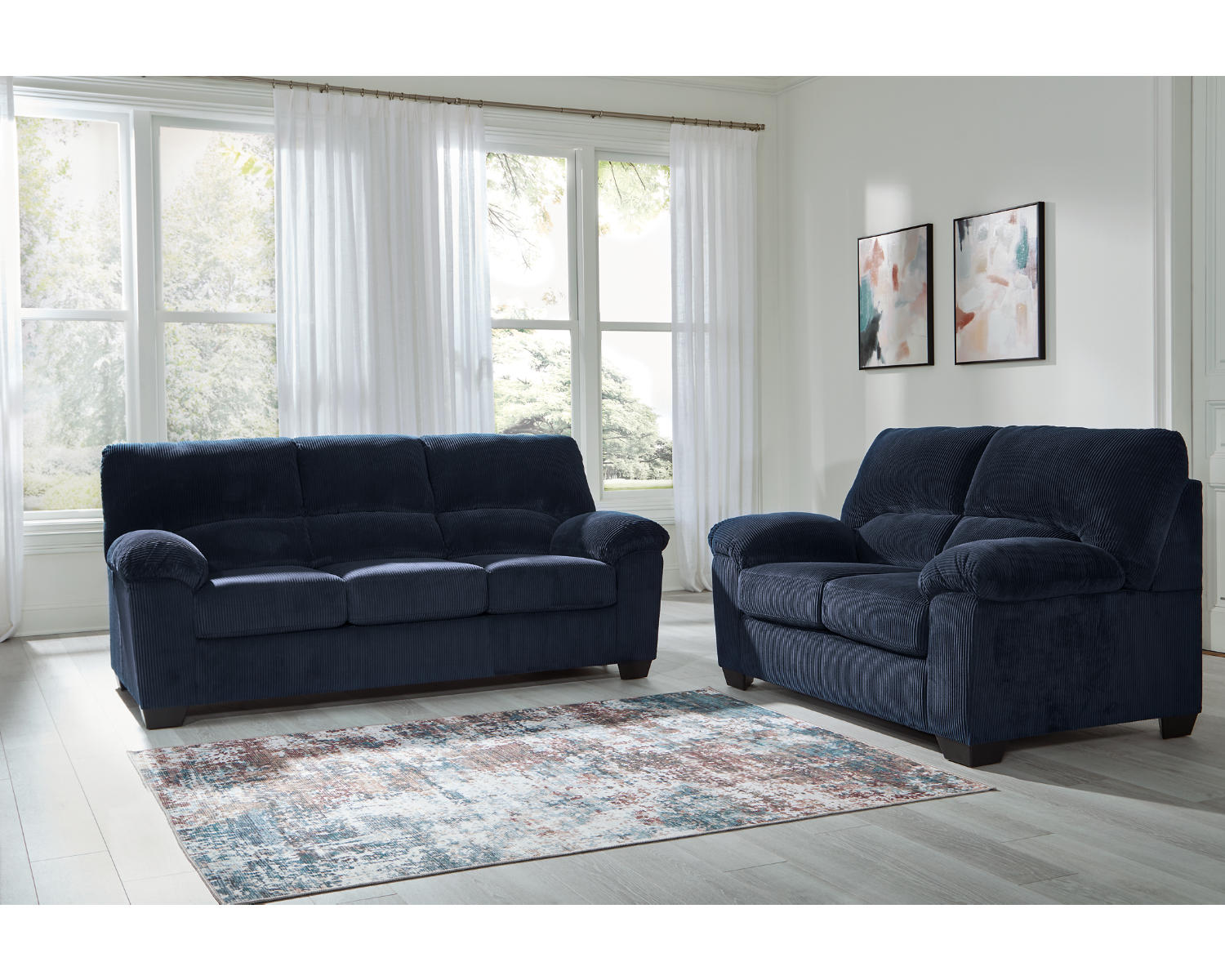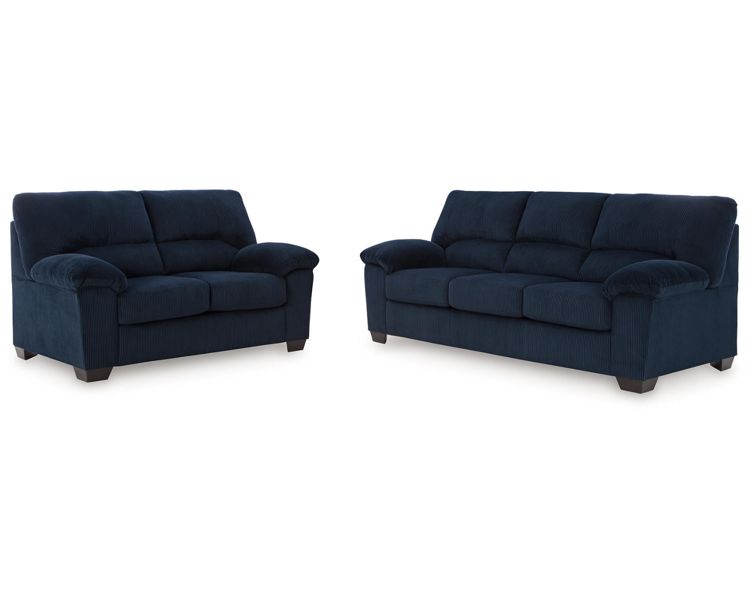 Meet the SimpleJoy Sofa and Loveseat in Navy, the perfect pair for living spaces that value clean lines and everyday comfort. This coordinated set is designed for modern living and effortless arrangement. The navy hue adds a timeless touch that coordinates with a wide range of decor.