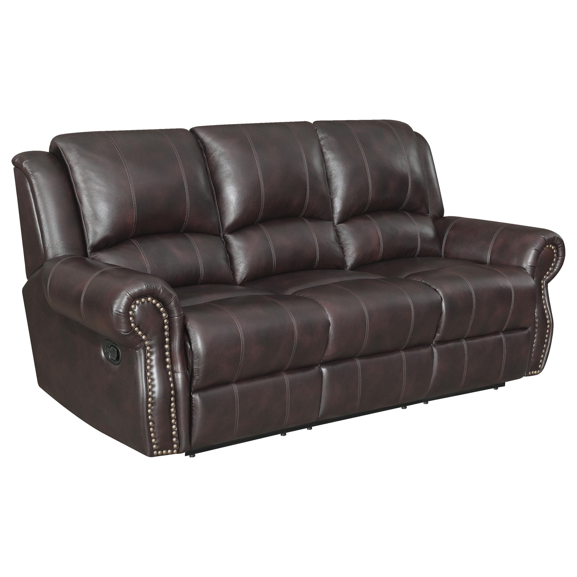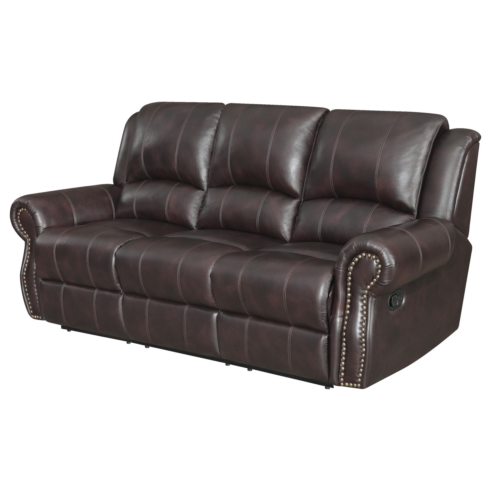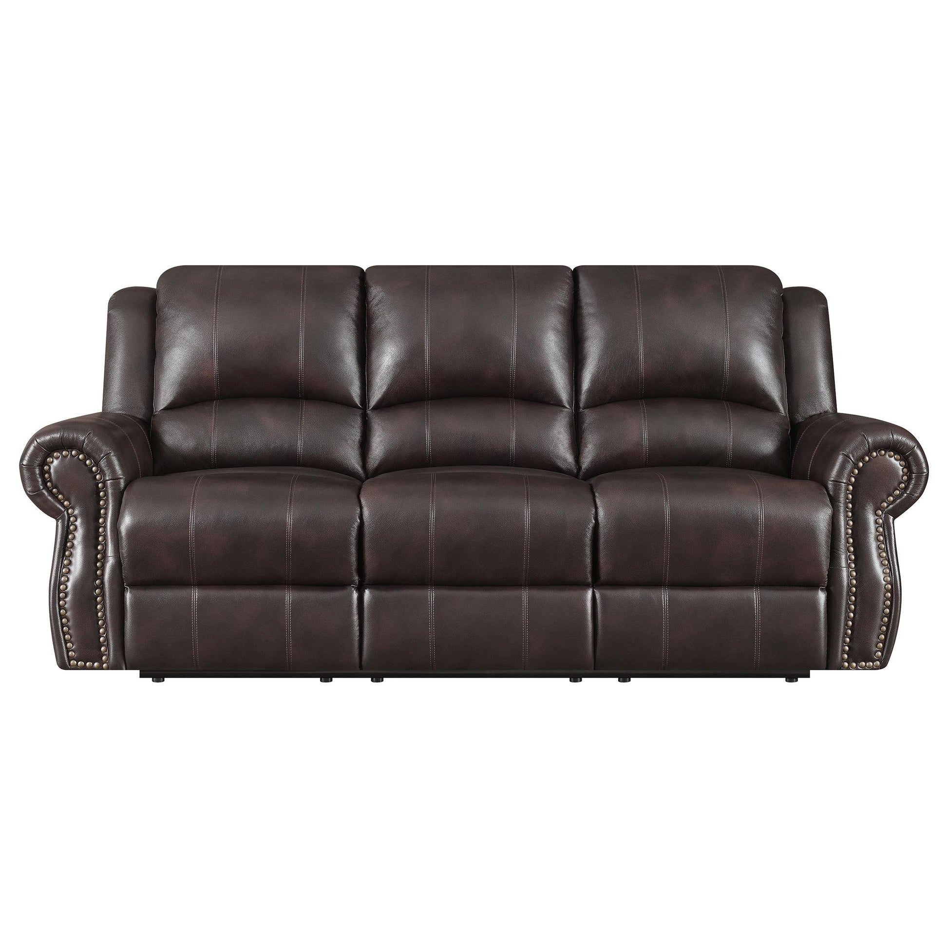 Meet the Sir Rawlinson Nailhead Trim Motion Sofa in Dark Brown—a versatile seating centerpiece designed for everyday living. This motion sofa blends refined style with comfortable function, featuring classic nailhead trim and a smooth reclining mechanism. It’s ideal for living rooms, media spaces, or any area that values both elegance and relaxation.