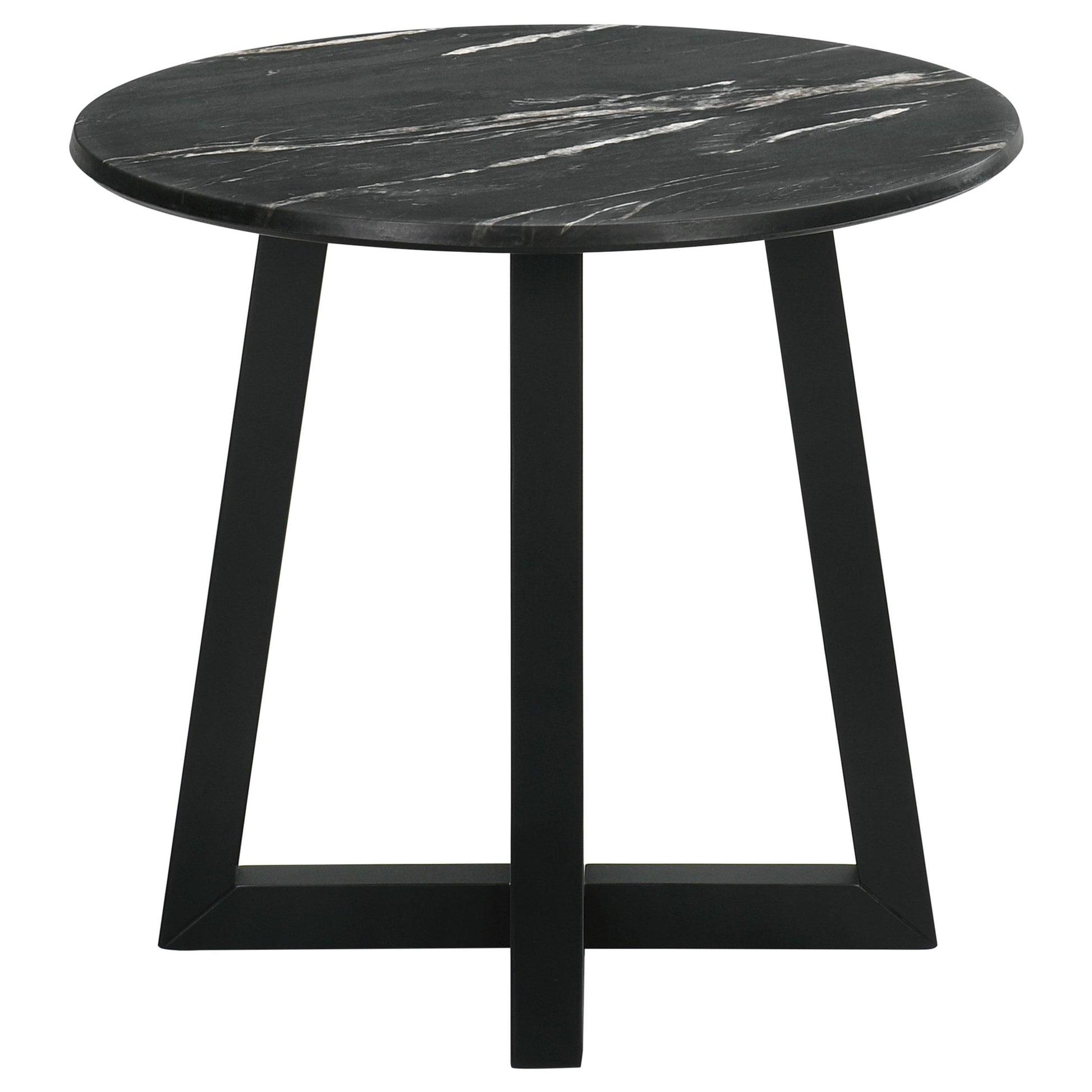- Round marble-like top in black for a sophisticated, modern appearance
