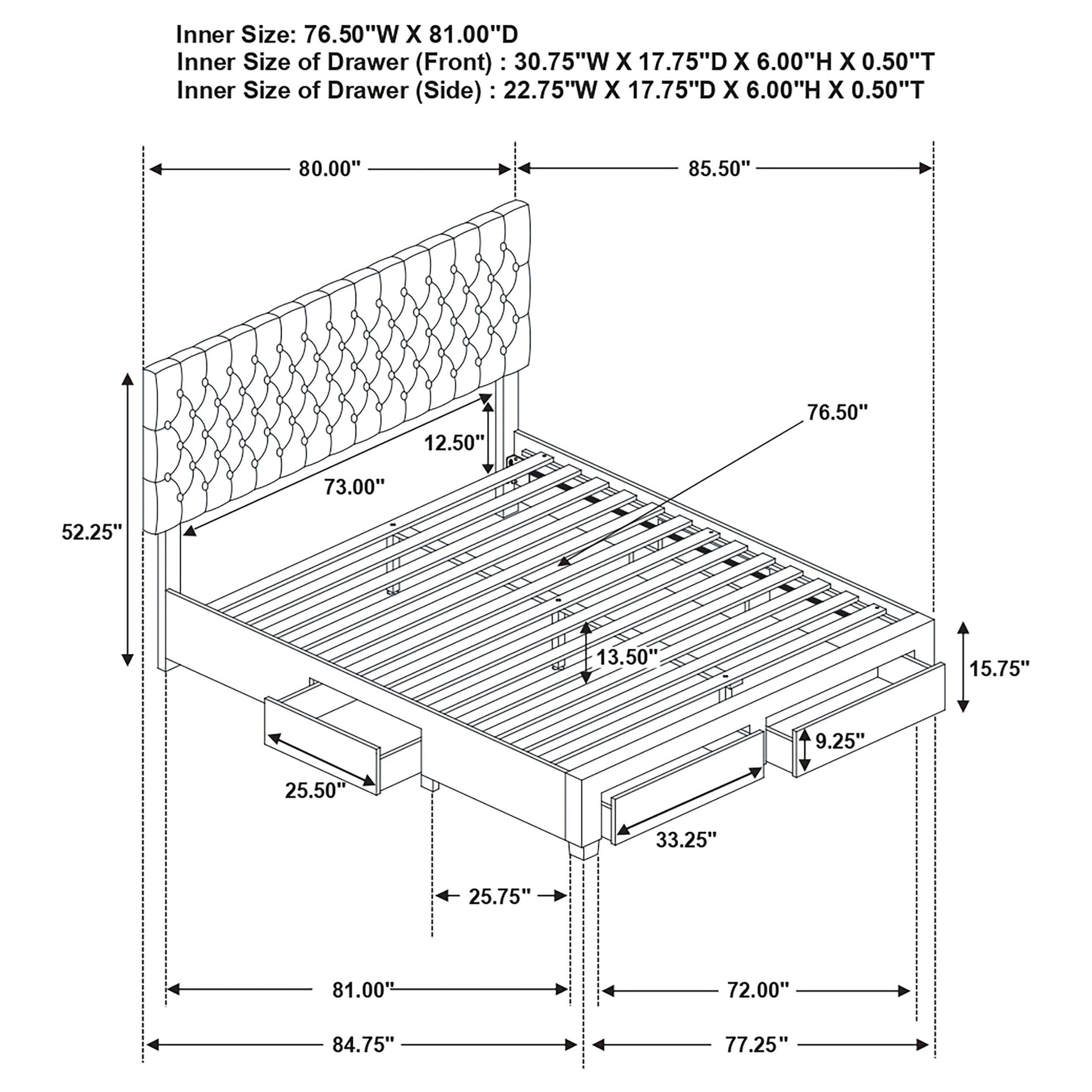 Soledad Upholstered Eastern King Storage Bed Light Grey