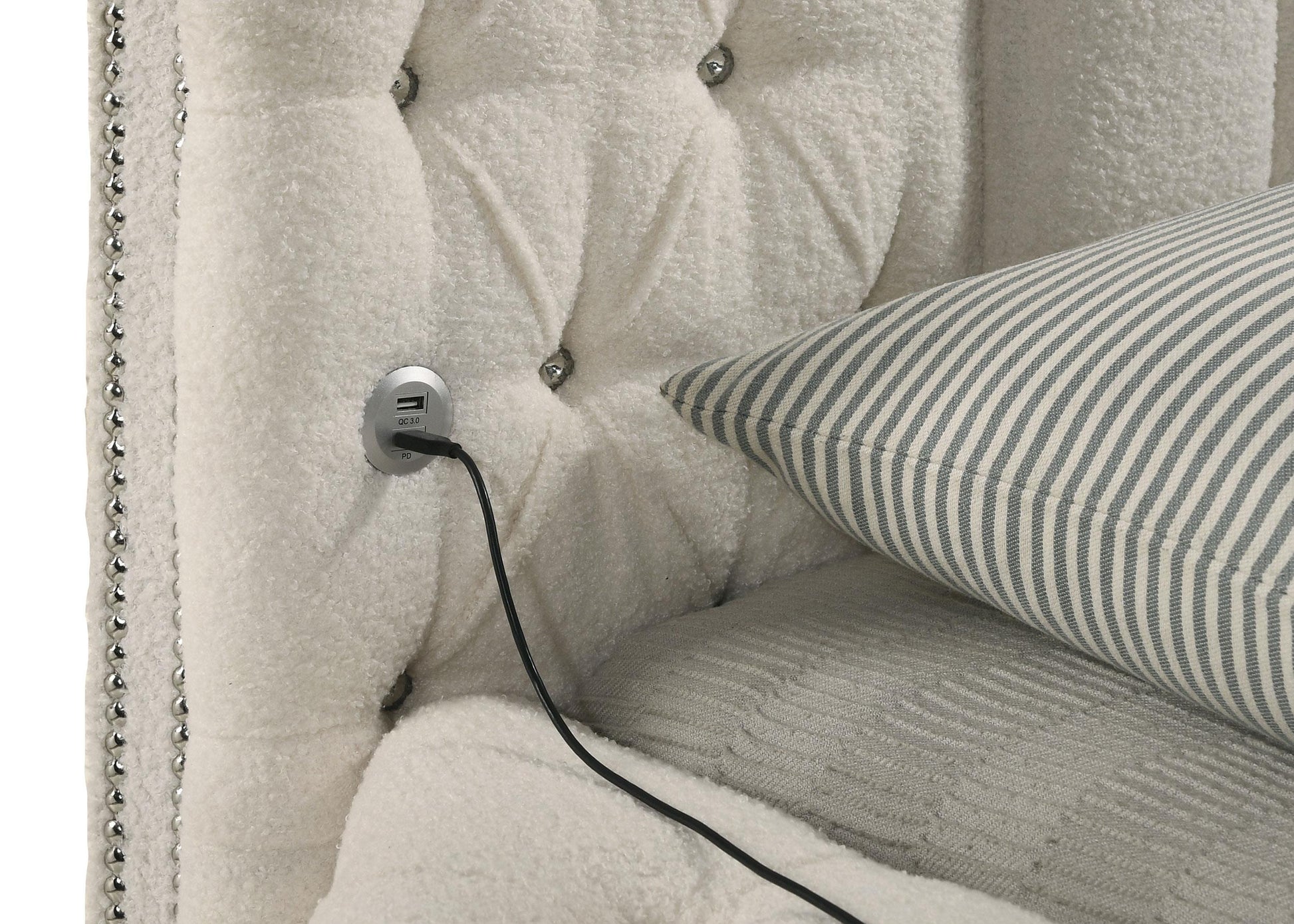 Sonya Upholstered Eastern King Round Storage Bed Ivory