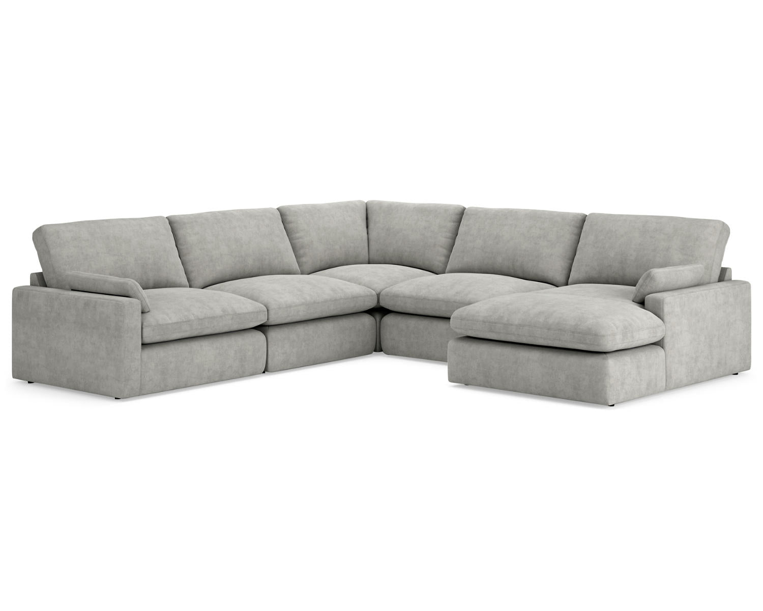 - Modular 5-piece configuration: arrange the pieces to fit your room and lifestyle, with a built-in chaise for extended lounging.