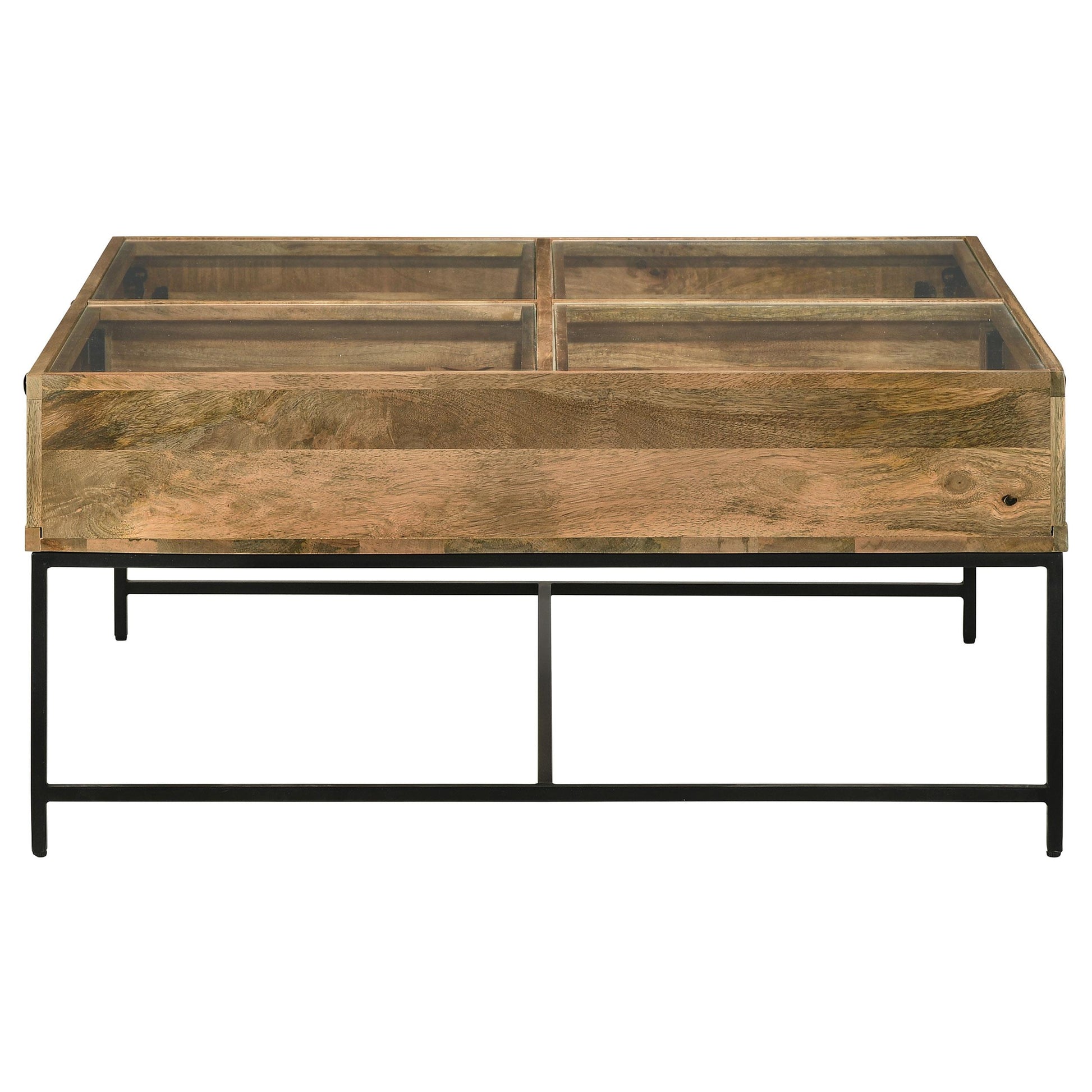 Stephie 4-drawer Square Glass Top Coffee Table — Honey Brown