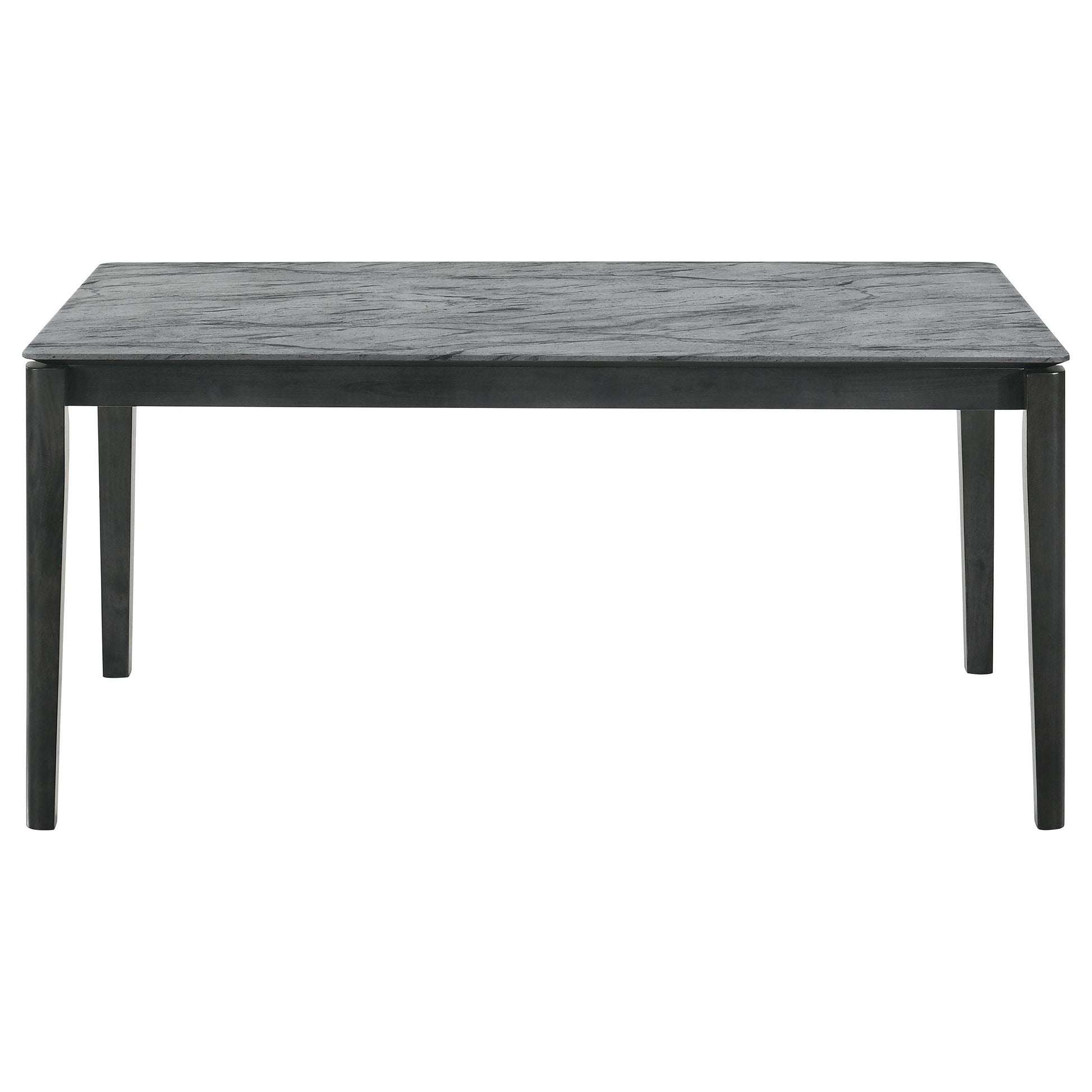 - Rectangular dining table with a streamlined silhouette that fits dining rooms, kitchens, or breakfast nooks.