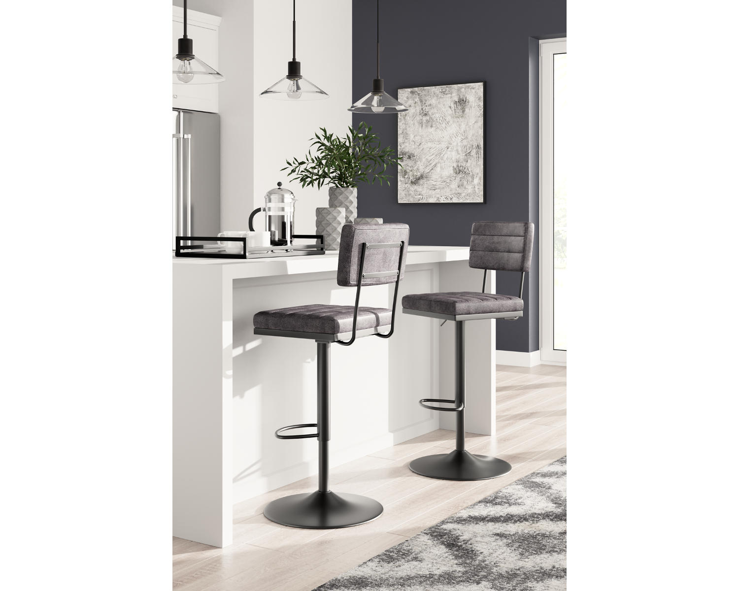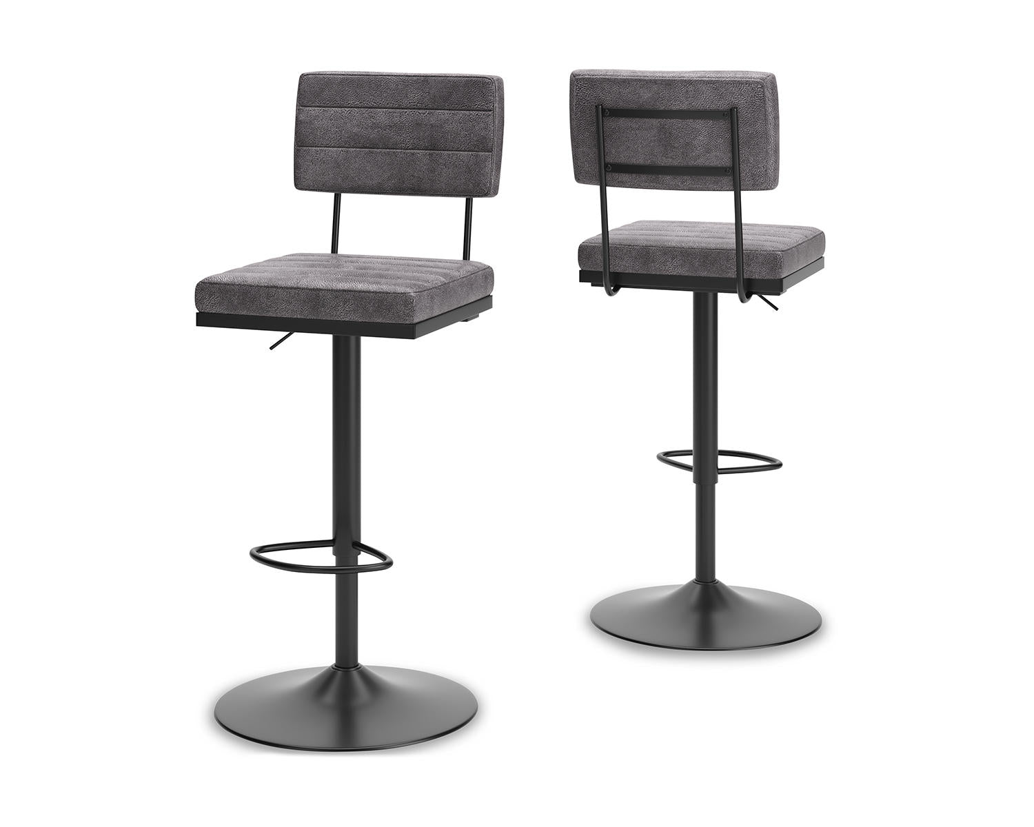 Elevate your home bar or kitchen island with the Strumford Bar Height Bar Stool. This set of 2 stools in a Gray/Black palette delivers a clean, versatile look—perfect for casual dining, entertaining, or everyday seating.