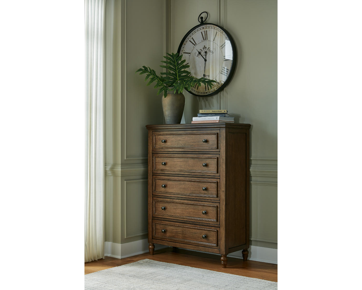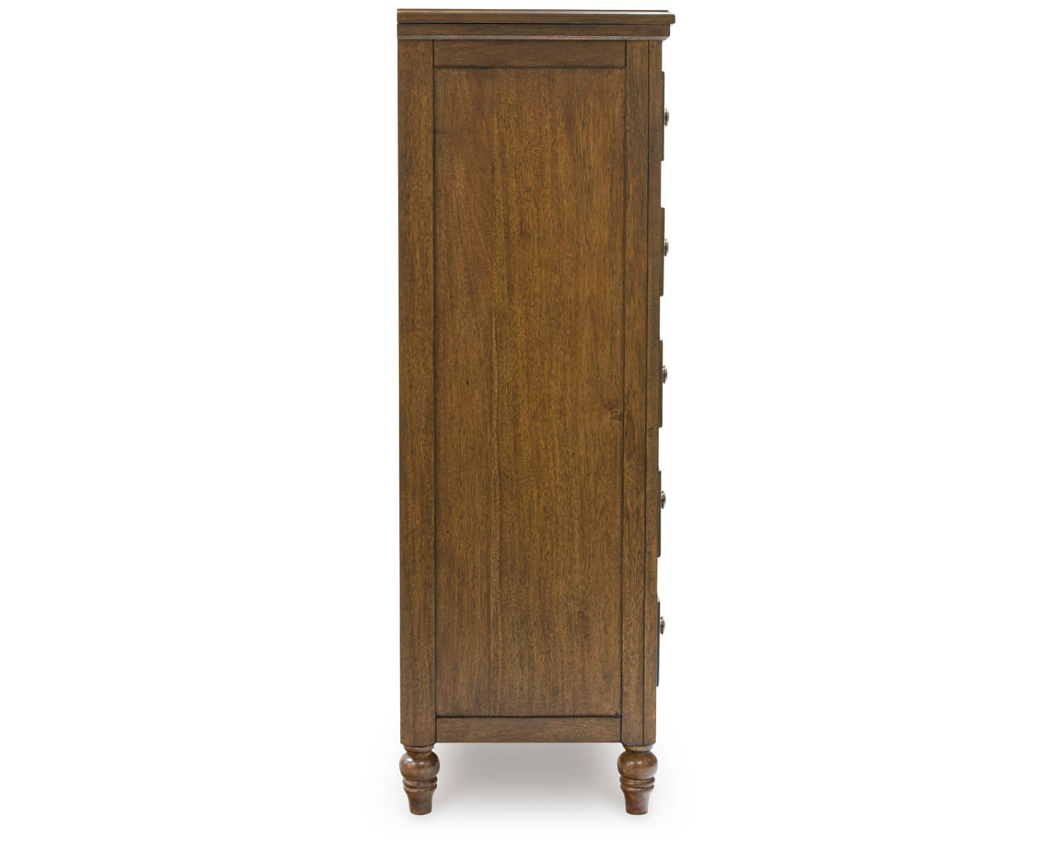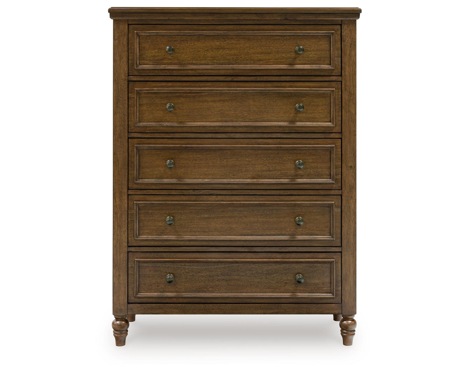 Meet the Sturlayne Chest of Drawers — a versatile storage solution designed for bedrooms, guest rooms, and any space in need of organized drawers. The five-drawer design offers ample storage with a warm brown finish that fits a variety of decors. Built for everyday use, it blends style with practicality.