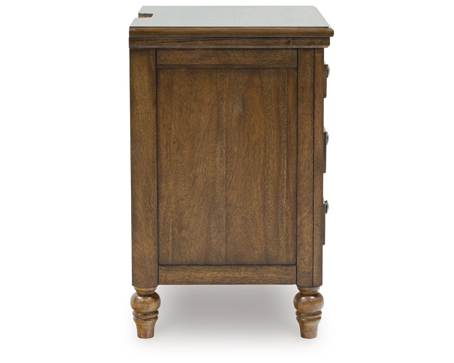 Meet the Sturlayne Nightstand — a compact, stylish bedside storage solution designed for those who value clean lines and practical organization. This brown, three-drawer nightstand keeps everyday essentials within reach while adding warmth to your bedroom décor. Built to sit beside your bed with a timeless silhouette, it's a reliable foundation for your nighttime routine.