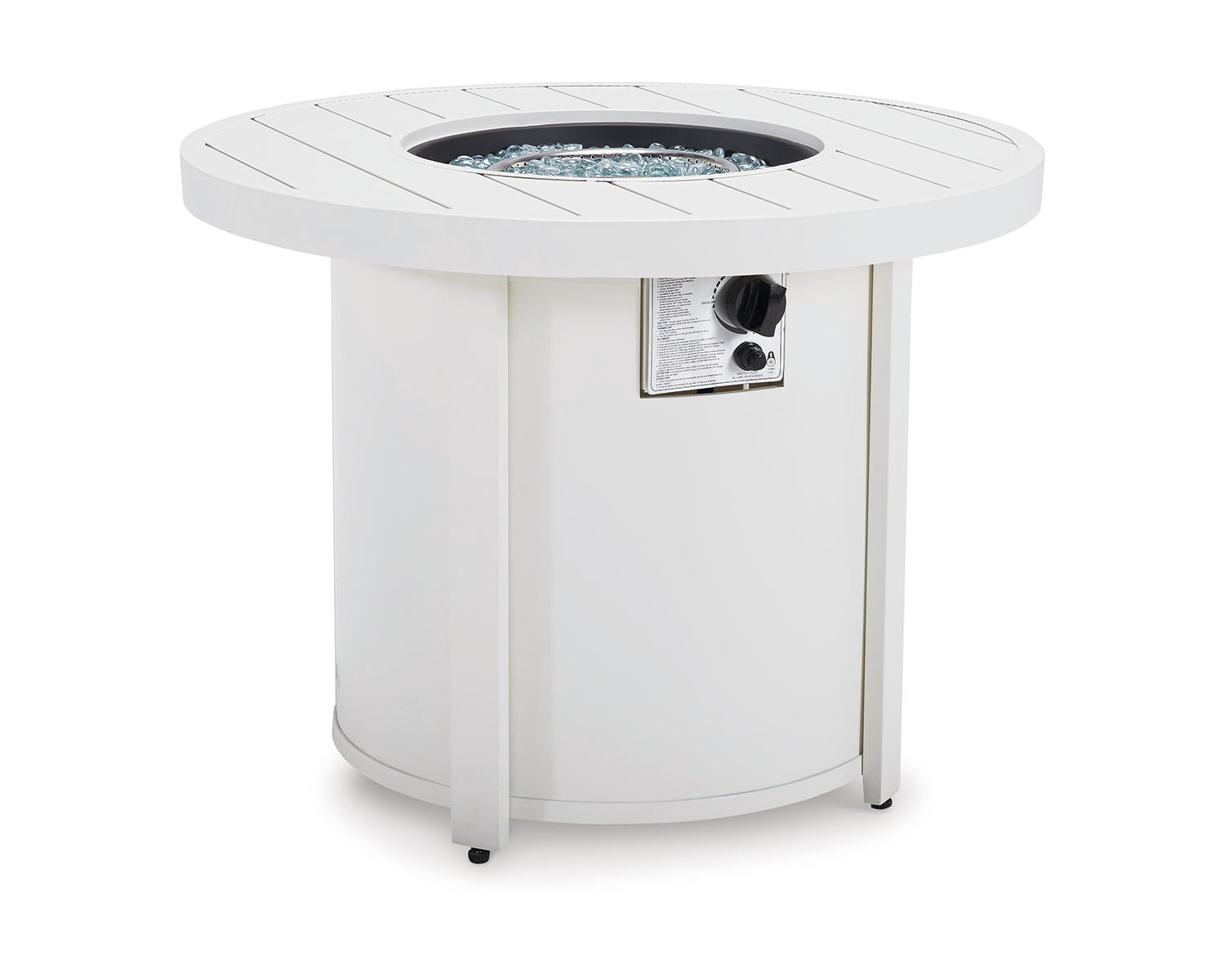 - Shape & Color: Round Fire Pit Table in White